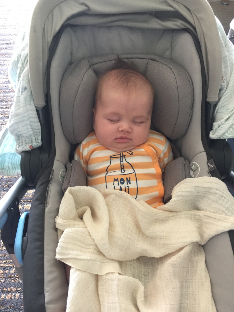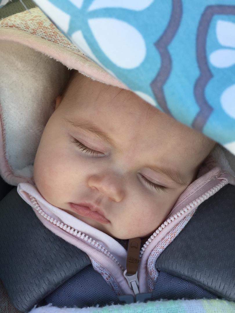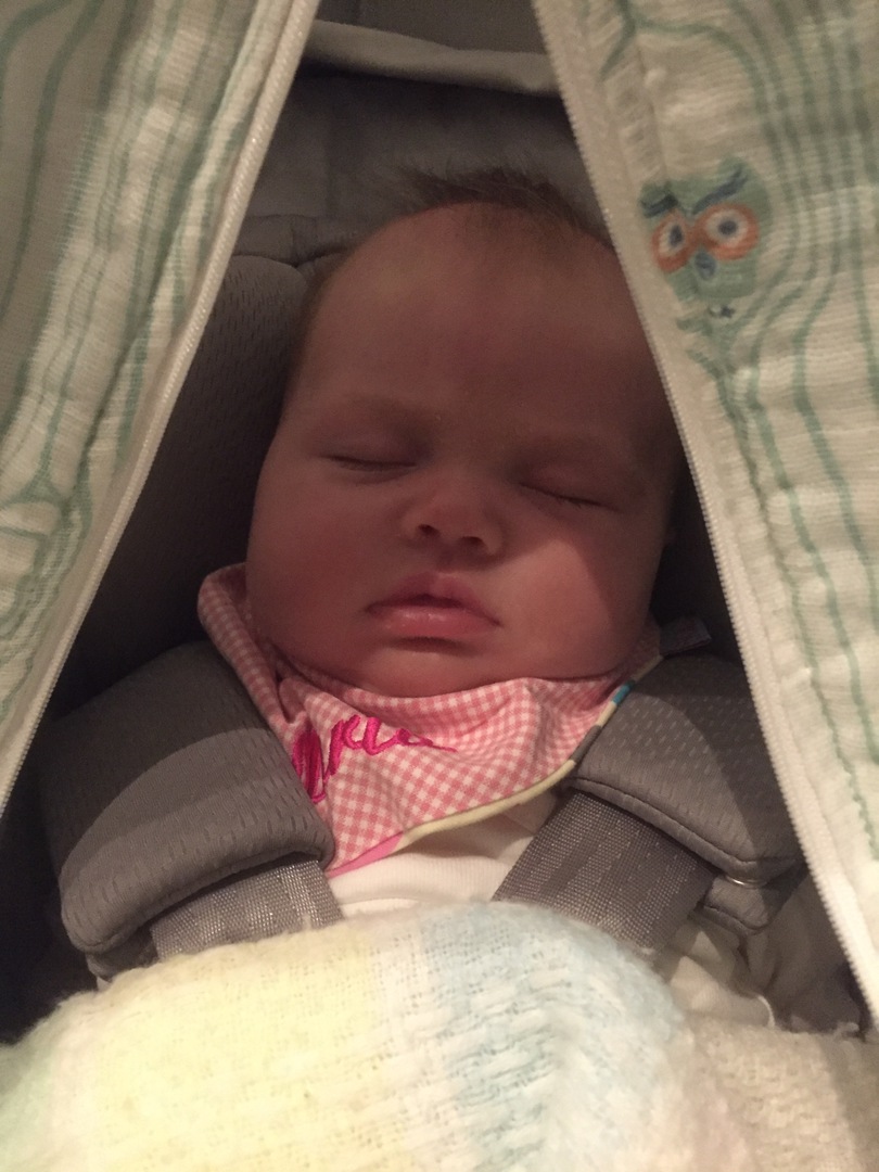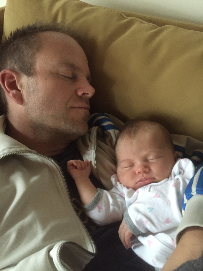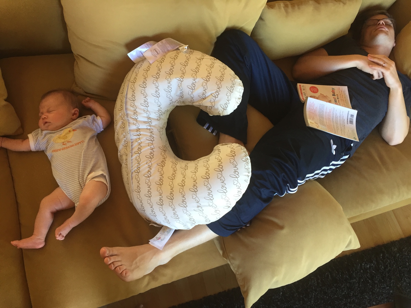 I have a new strategy which results in a win-win situation for my Papas and me. I try to minimize the amount of sleep at night by decreasing the amount of food consuming per feeding and increasing the frequency of my feedings. With this, I can sleep through the day and my Papas can do their stuff, whatever they need to do. Plus, on top of it, they get to carry me around all night long which is strenghtening their muscles and they can skip the gym and safe money. Whoo hoo. As you can see in the pic, it works: Total relaxation through my new strategy. Just wondering why they look like zombies these days....