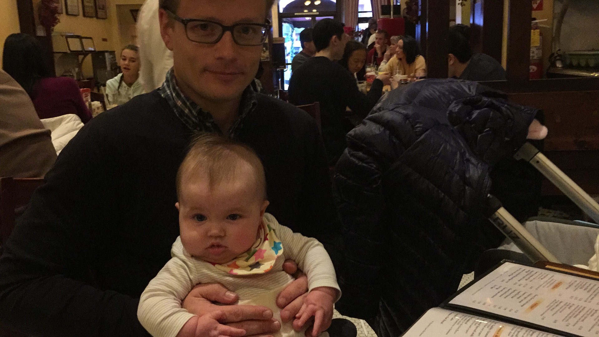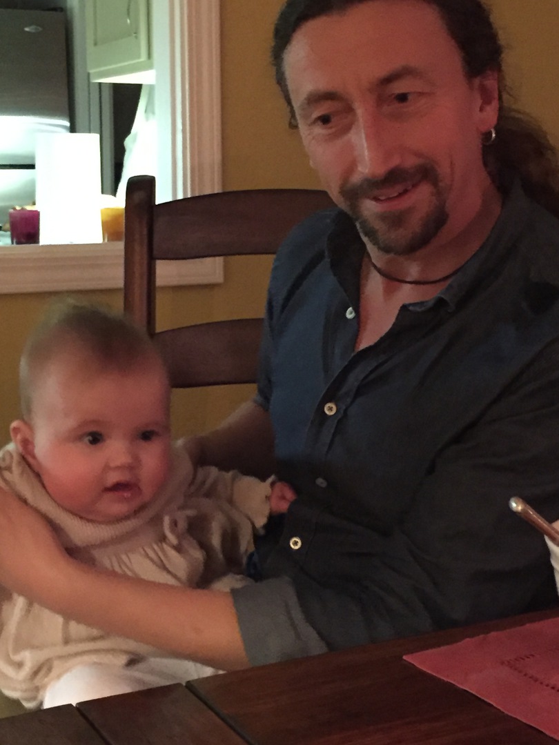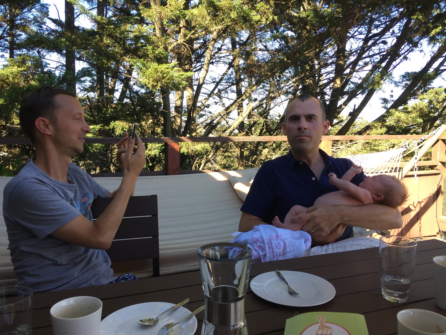 Die letzten Wochen in SF sind wir im Flug vergangen. Wir hatten ziemlich viel Regen - es hat sogar in unser Apartment geregnet - aer auch einige sehr sonnige Tage. Aber ganz egal wie das Wetter auch ist: Ich liebe es, mit meinen papa viel Zeit draussen zu verbringen - oder auch eingeladen zu werden, wie im Bild unten bei Arnaud und Guillame wo wir traditionelle franzoesische Galettes bekommen haben - und natuerlich noch ein grosse Flasche Milch!