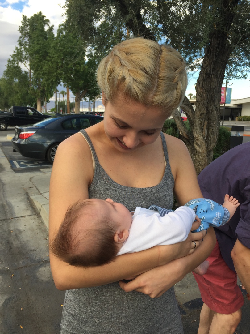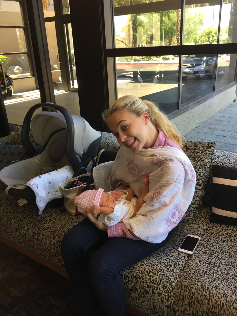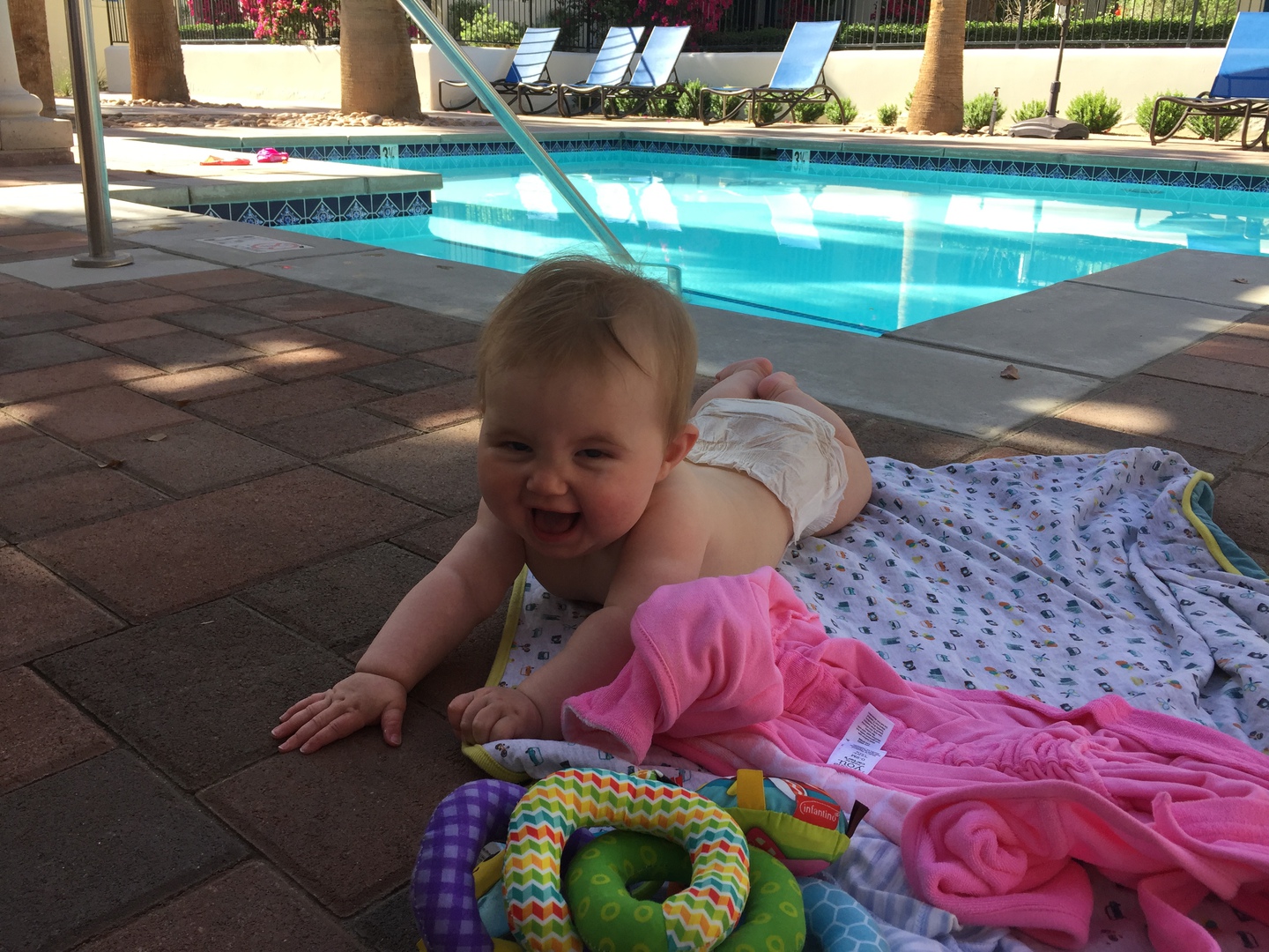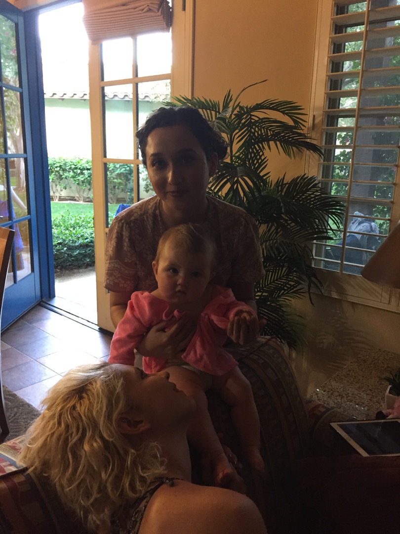 Ich bin noch immer in La Quinta und geniesse die Hitze, die Sonne und die Aufmerksamkeit meiner grossen Familie. Hier sind so viele liebevolle Menschen um mich herum und jeder moechte mich halten, fuettern und sogar meine Windeln wechseln. Ich liebe es im Mittelpunkt zu stehen. Ich vermisse Euch jetzt schon! Ich werde meine Papas taeglich darin erinnern, dass wir so bald als moeglich wieder kommen muessen.Versprochen!