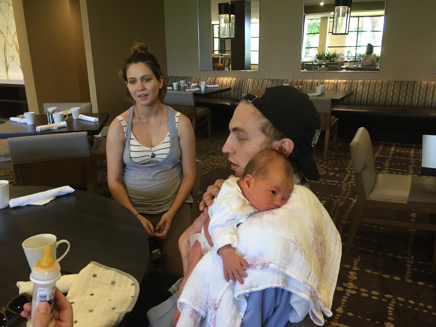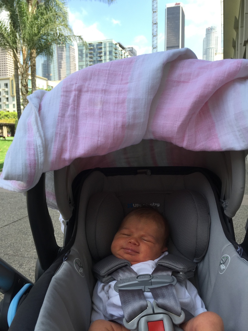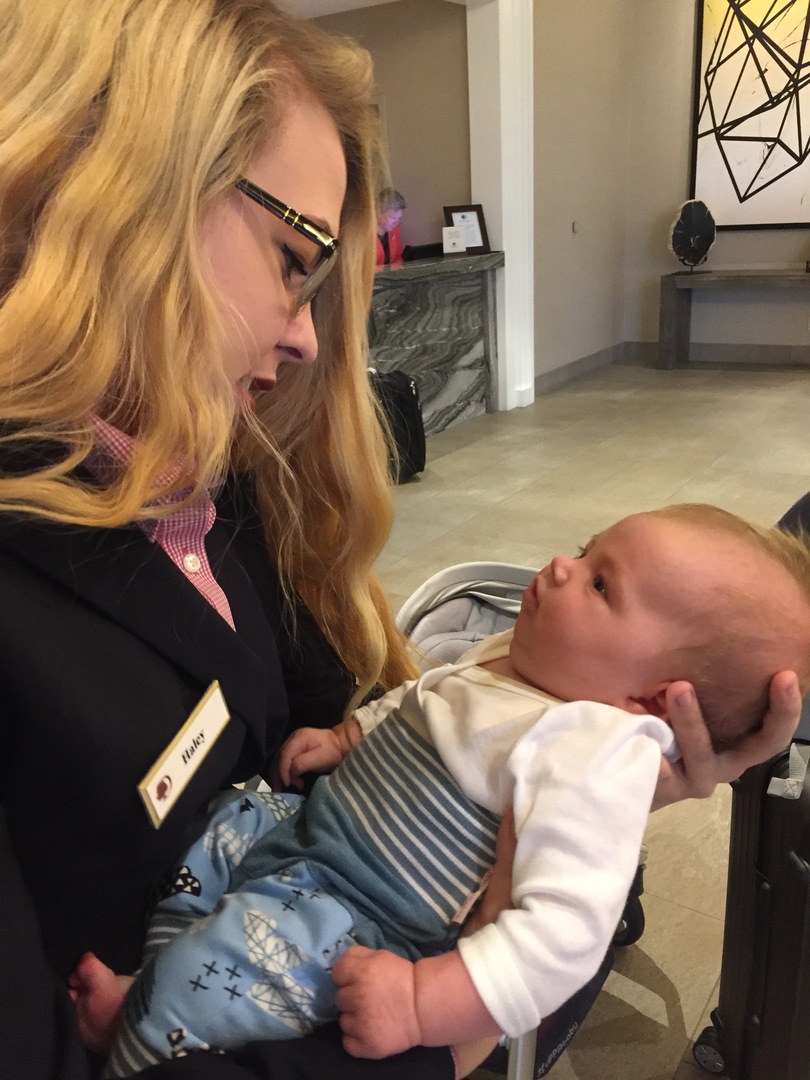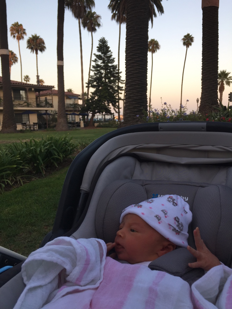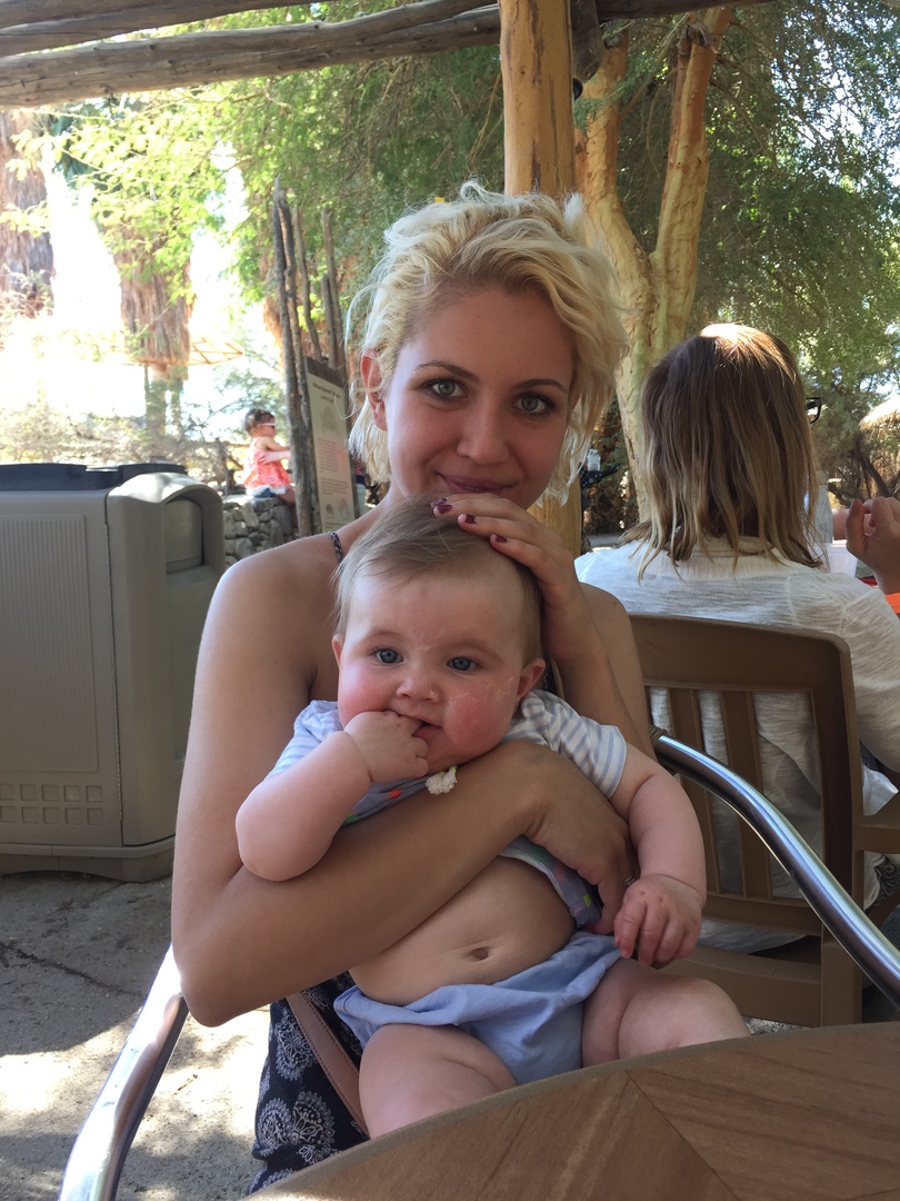 Ich bin noch immer in La Quinta und geniesse die Hitze, die Sonne und die Aufmerksamkeit meiner grossen Familie. Hier sind so viele liebevolle Menschen um mich herum und jeder moechte mich halten, fuettern und sogar meine Windeln wechseln. Ich liebe es im Mittelpunkt zu stehen. Ich vermisse Euch jetzt schon! Ich werde meine Papas taeglich darin erinnern, dass wir so bald als moeglich wieder kommen muessen.Versprochen!