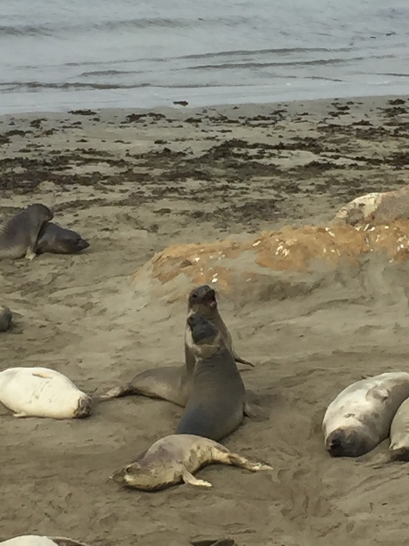 The last day of our trip. The scenic route from Cambria to San Francisco. Just right after we left, we stopped to see the Sea Elephants. This was the best part of the day the remaining part is not as scenic when you are sqeezed into a car seat facing backwards. I think my Papas don't really understand this. Oh, and did I ever tell you that I don't like car seats? Need to tell my Papas as well - have to figure out how to best telling them....