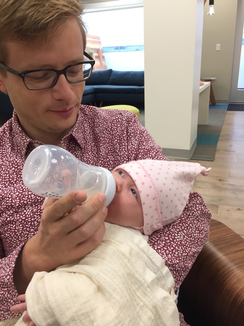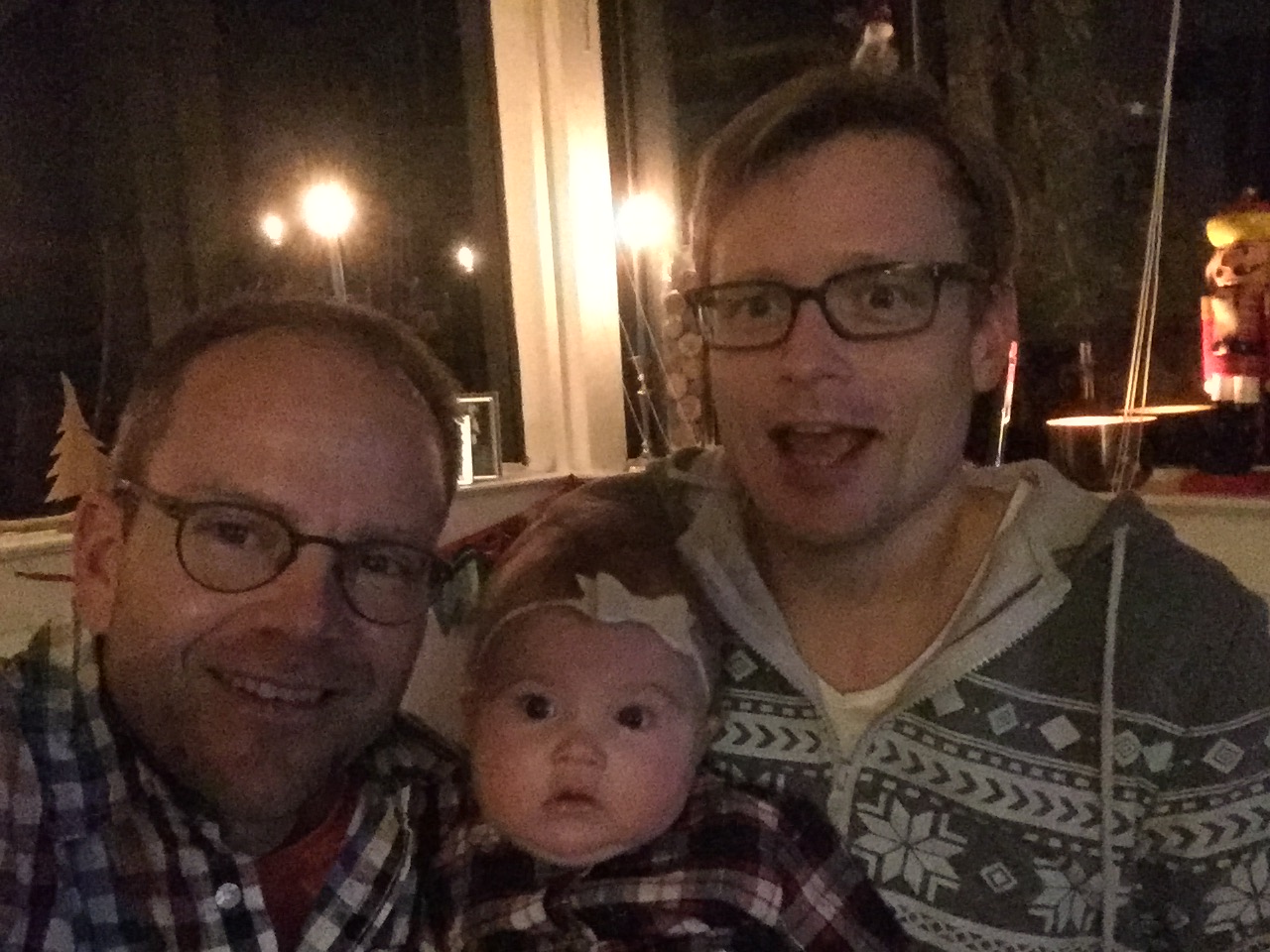 Mein zweiter Tag mit meinen Papas. Ich habe meiner Mom versprochen sie ordentlich auf Trapp zu halten und wir waren die gesamte Nacht wach. Ich hatte viel Spass! Aber ich denke meine Papas waren ziemlich fertig und hoch erfreut, als Mom vorbei schaute und sich um mich kuemmerte. Endlich ein bisschen Zeit fuer sie zu relaxen.