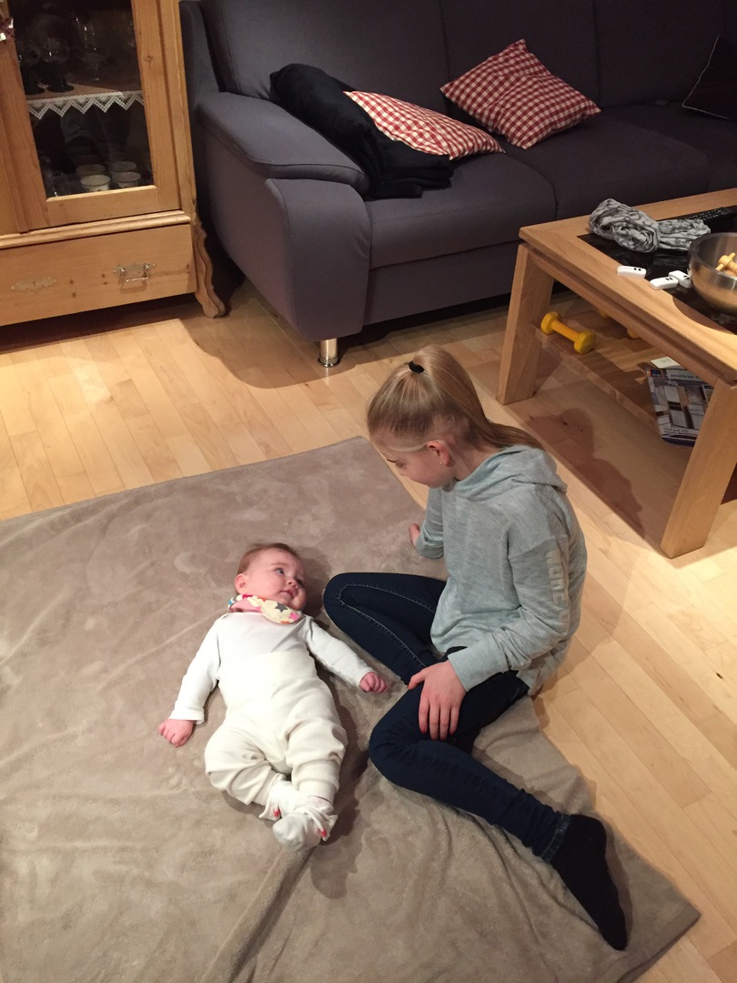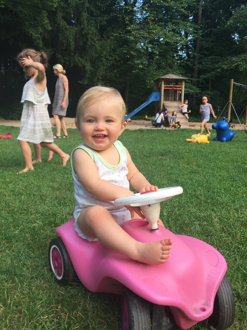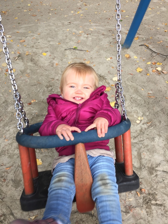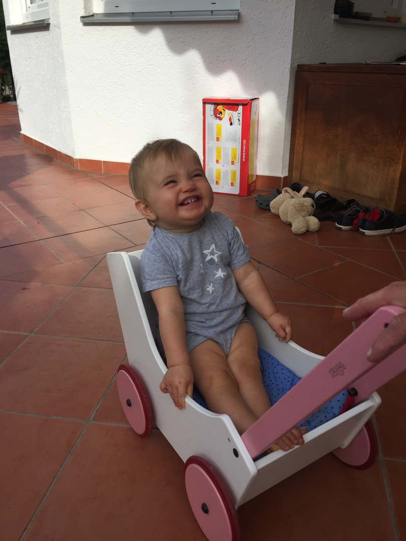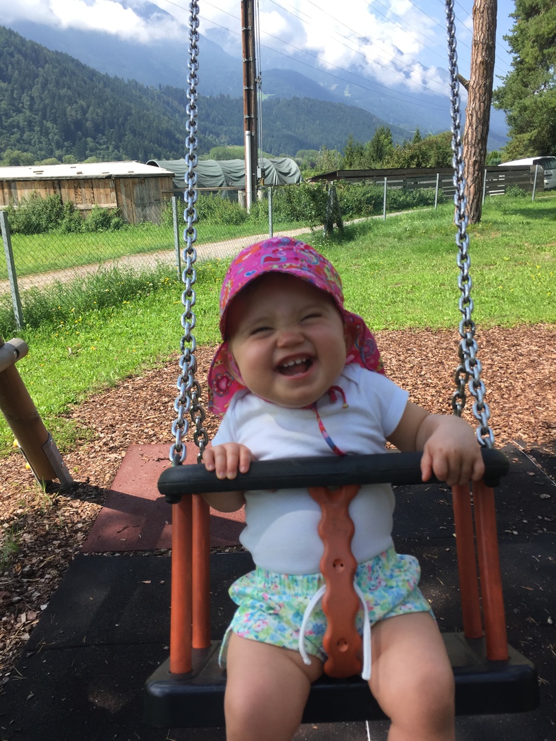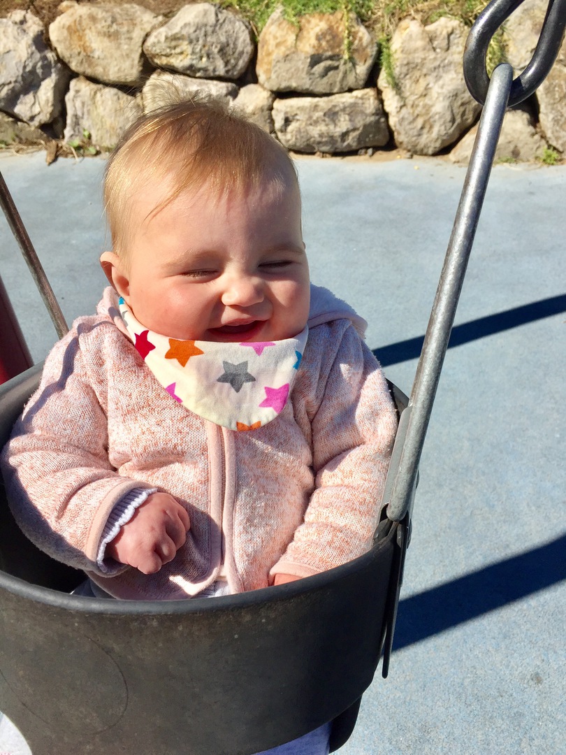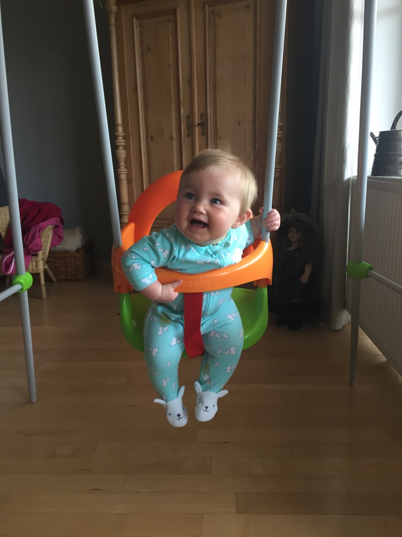 Apart from that: I developed a passion for swings. I can't get enough, this is so much fun! But I also love watching Papa Marco doing his Yoga lessons and I love my swimming classes. I am a very sportive baby. And my friend Imogen is living with us now for a while. We are having a lot of fun :-) I love pulling her hair!