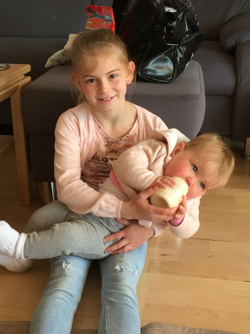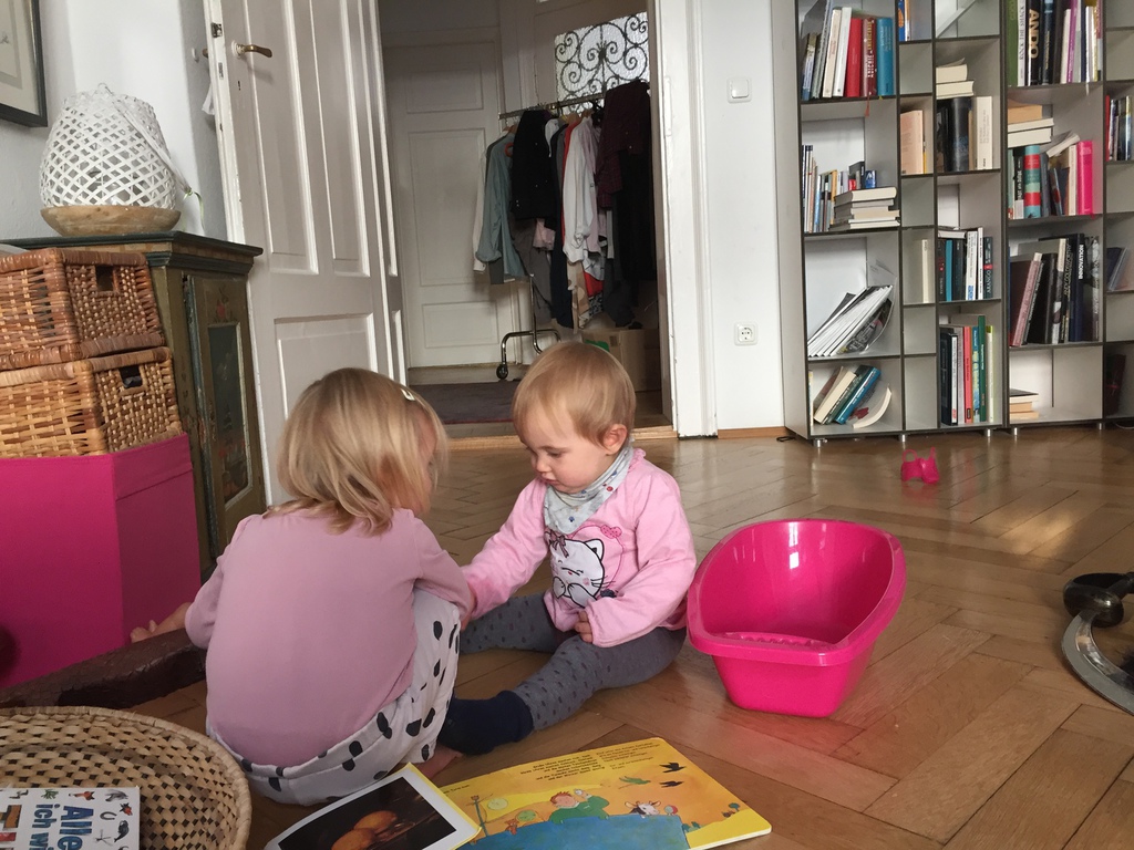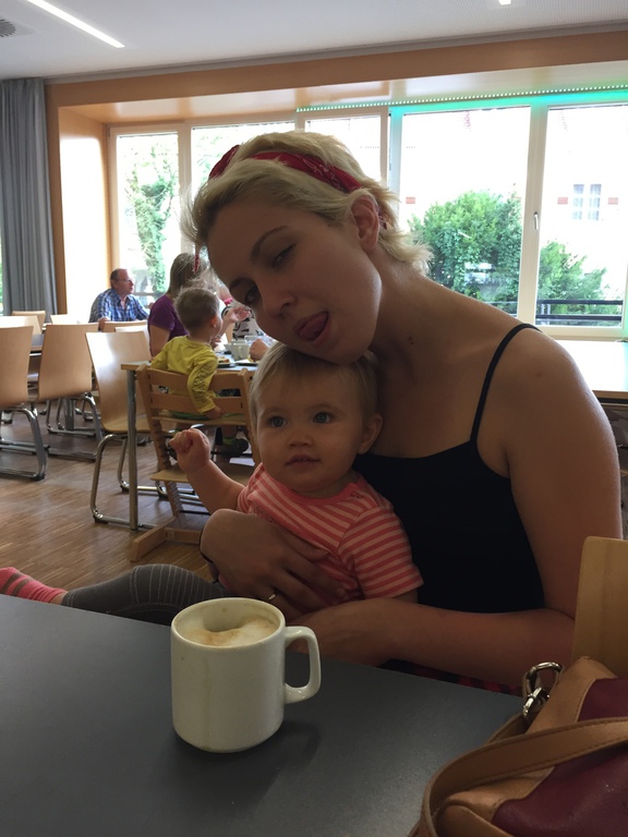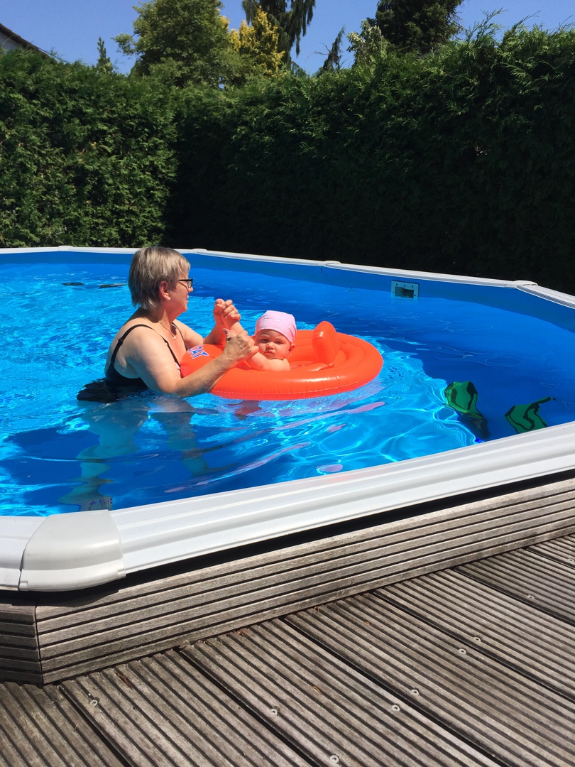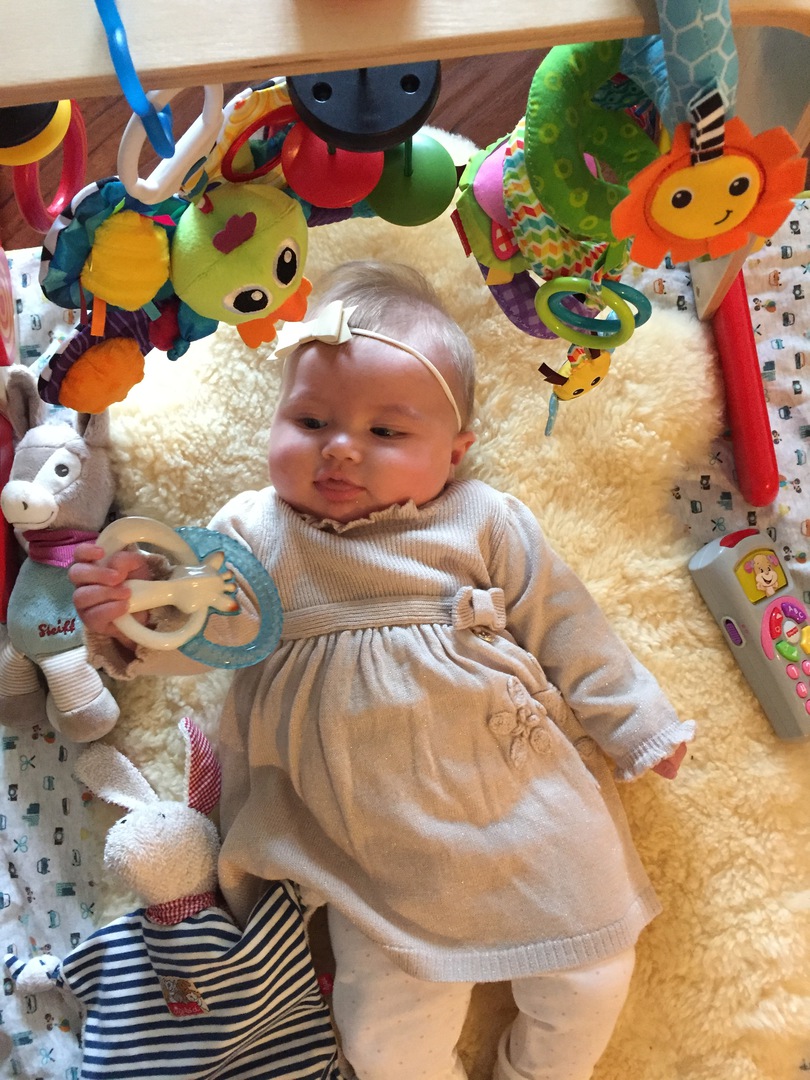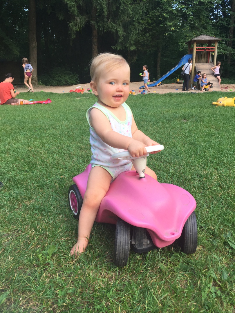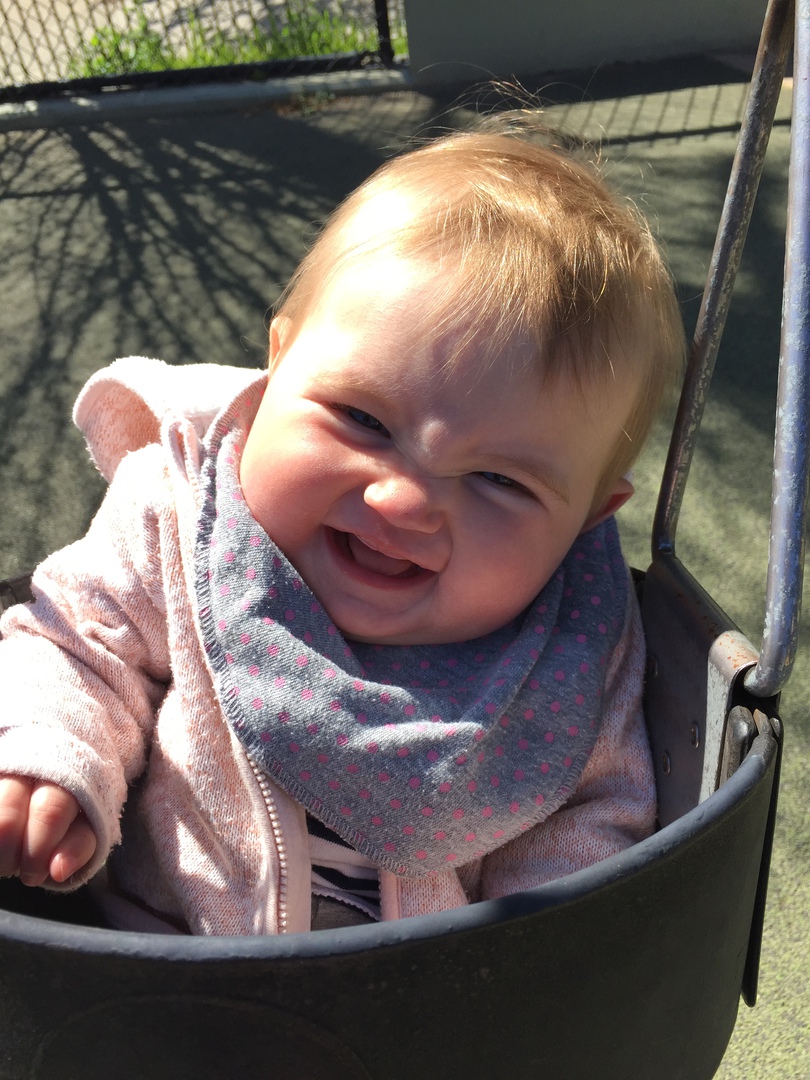 Apart from that: I developed a passion for swings. I can't get enough, this is so much fun! But I also love watching Papa Marco doing his Yoga lessons and I love my swimming classes. I am a very sportive baby. And my friend Imogen is living with us now for a while. We are having a lot of fun :-) I love pulling her hair!