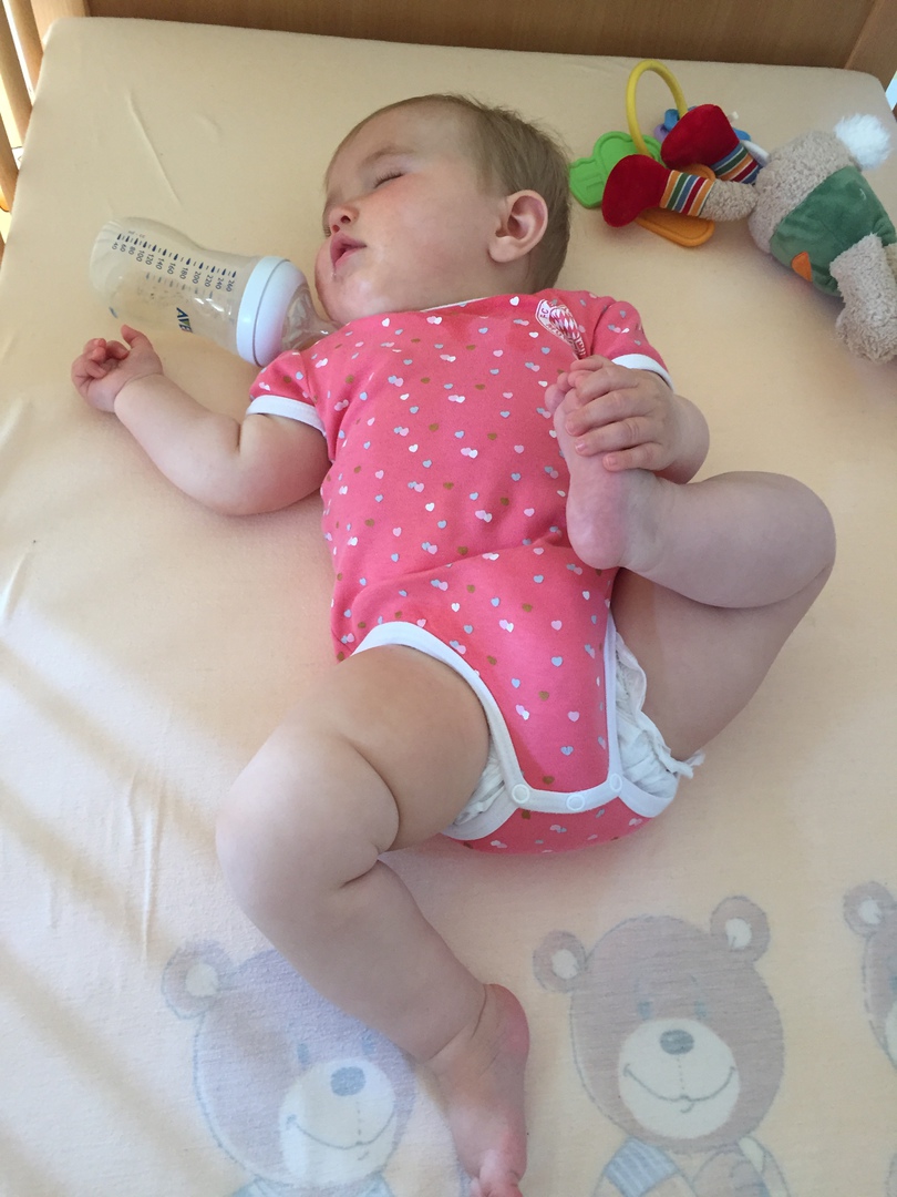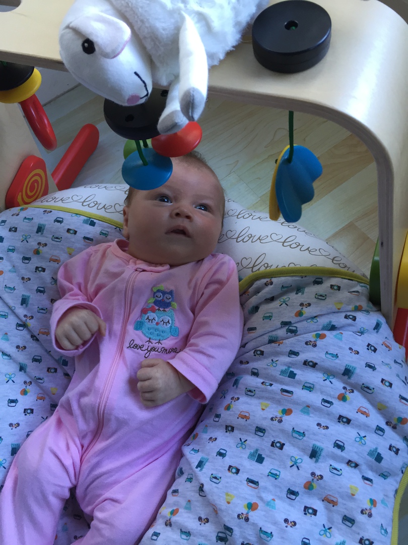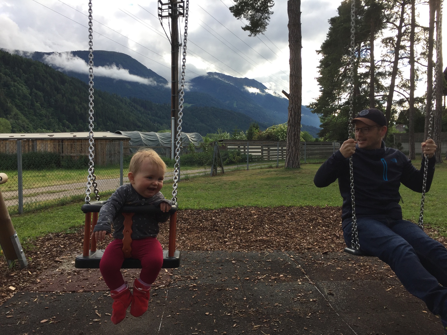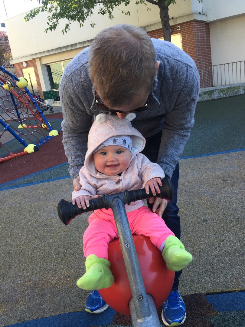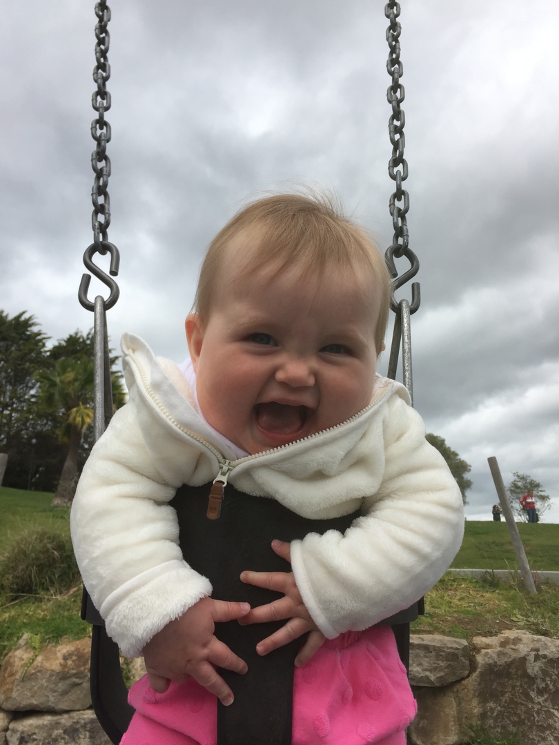 Apart from that: I developed a passion for swings. I can't get enough, this is so much fun! But I also love watching Papa Marco doing his Yoga lessons and I love my swimming classes. I am a very sportive baby. And my friend Imogen is living with us now for a while. We are having a lot of fun :-) I love pulling her hair!