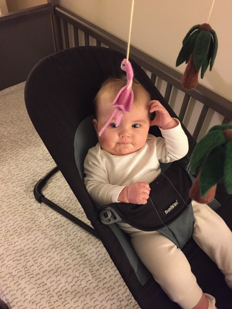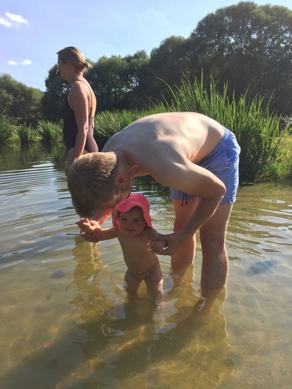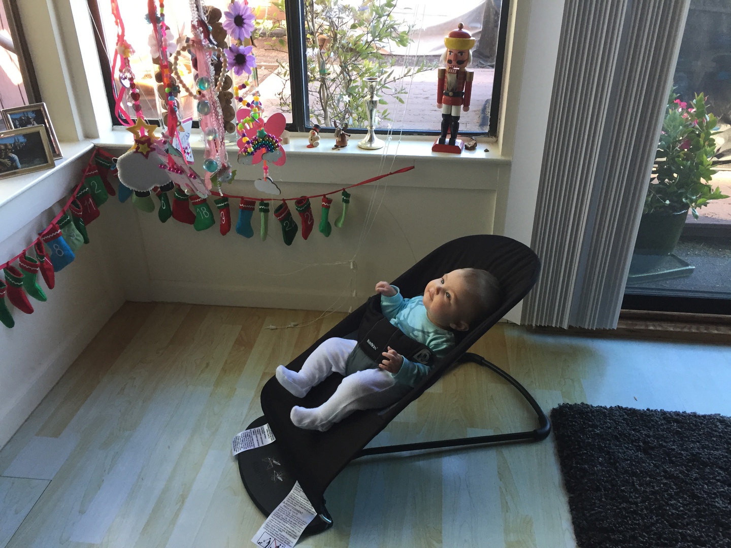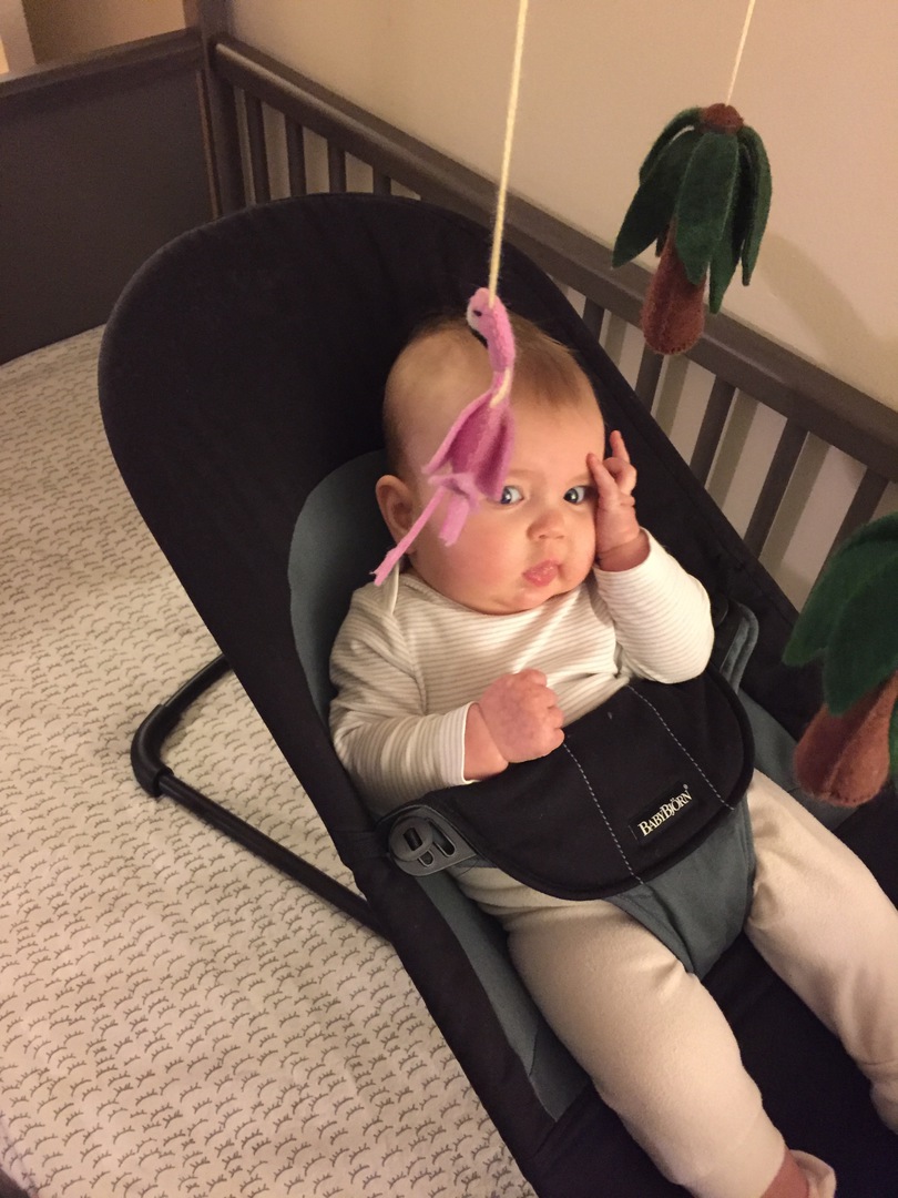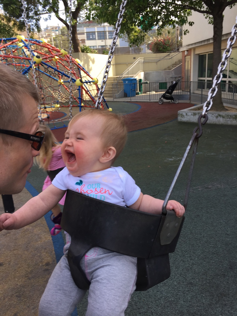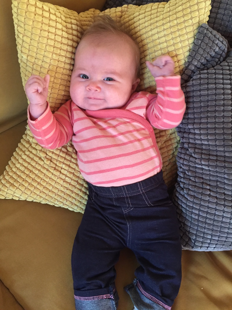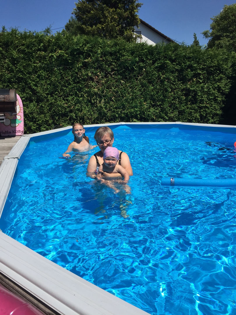 Apart from that: I developed a passion for swings. I can't get enough, this is so much fun! But I also love watching Papa Marco doing his Yoga lessons and I love my swimming classes. I am a very sportive baby. And my friend Imogen is living with us now for a while. We are having a lot of fun :-) I love pulling her hair!