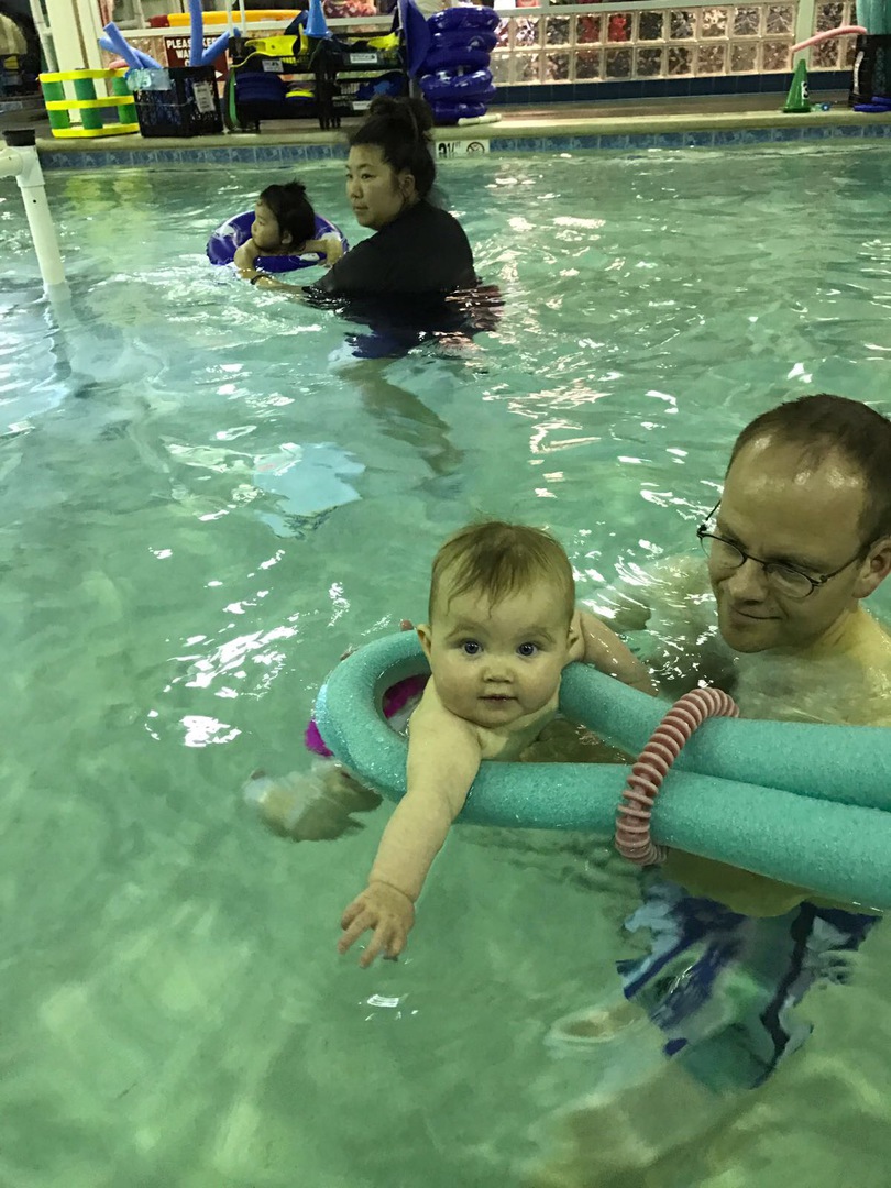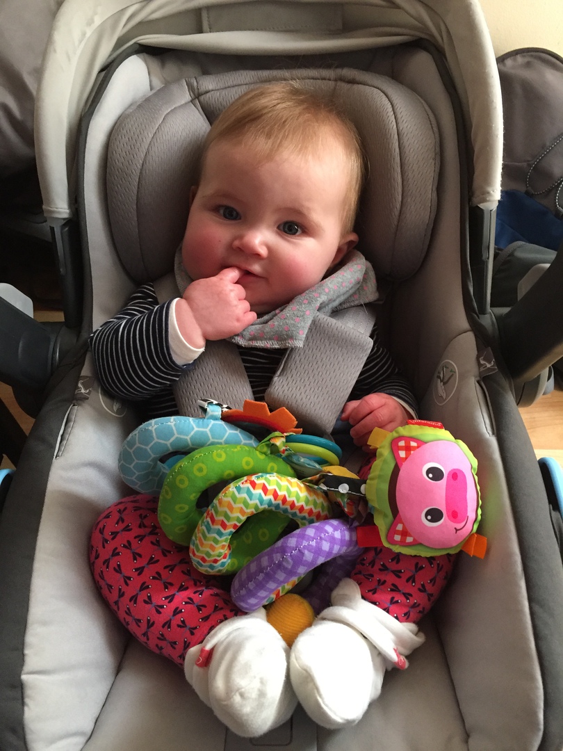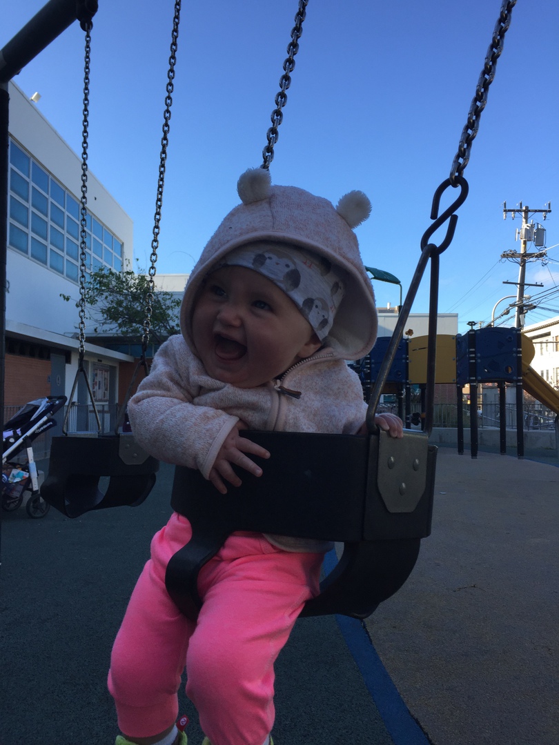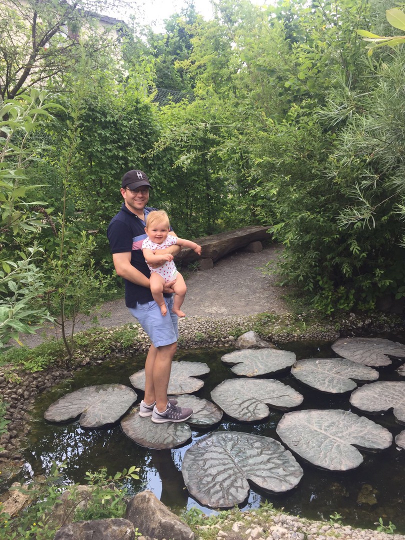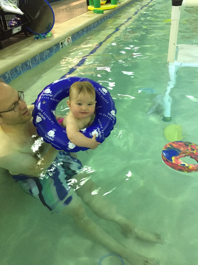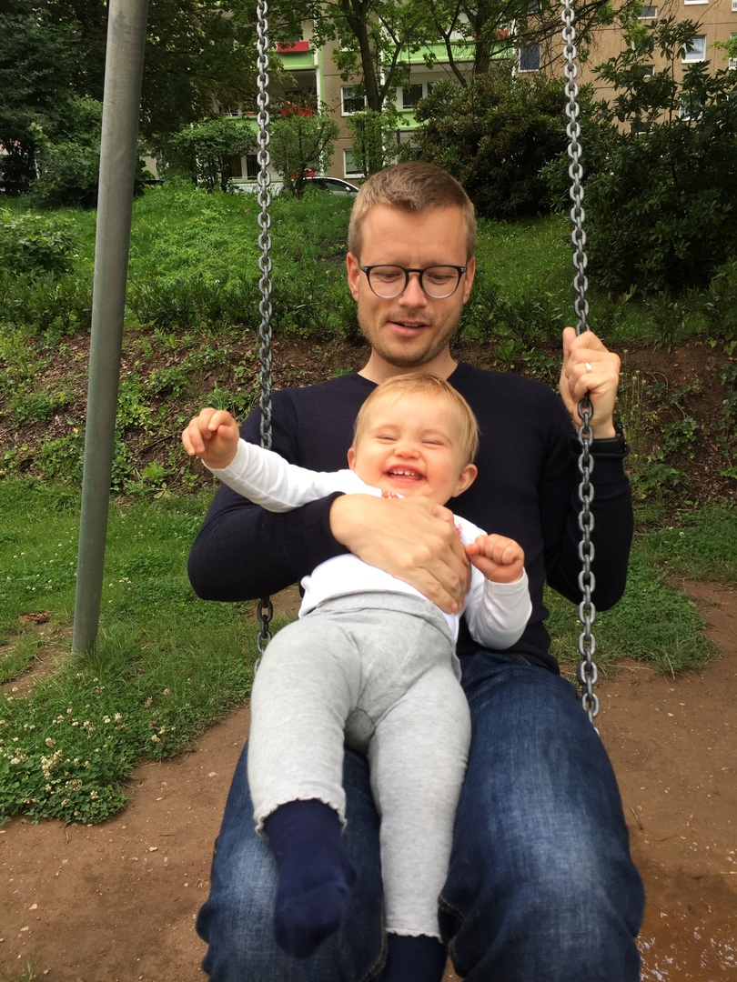 Apart from that: I developed a passion for swings. I can't get enough, this is so much fun! But I also love watching Papa Marco doing his Yoga lessons and I love my swimming classes. I am a very sportive baby. And my friend Imogen is living with us now for a while. We are having a lot of fun :-) I love pulling her hair!