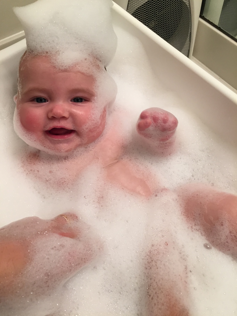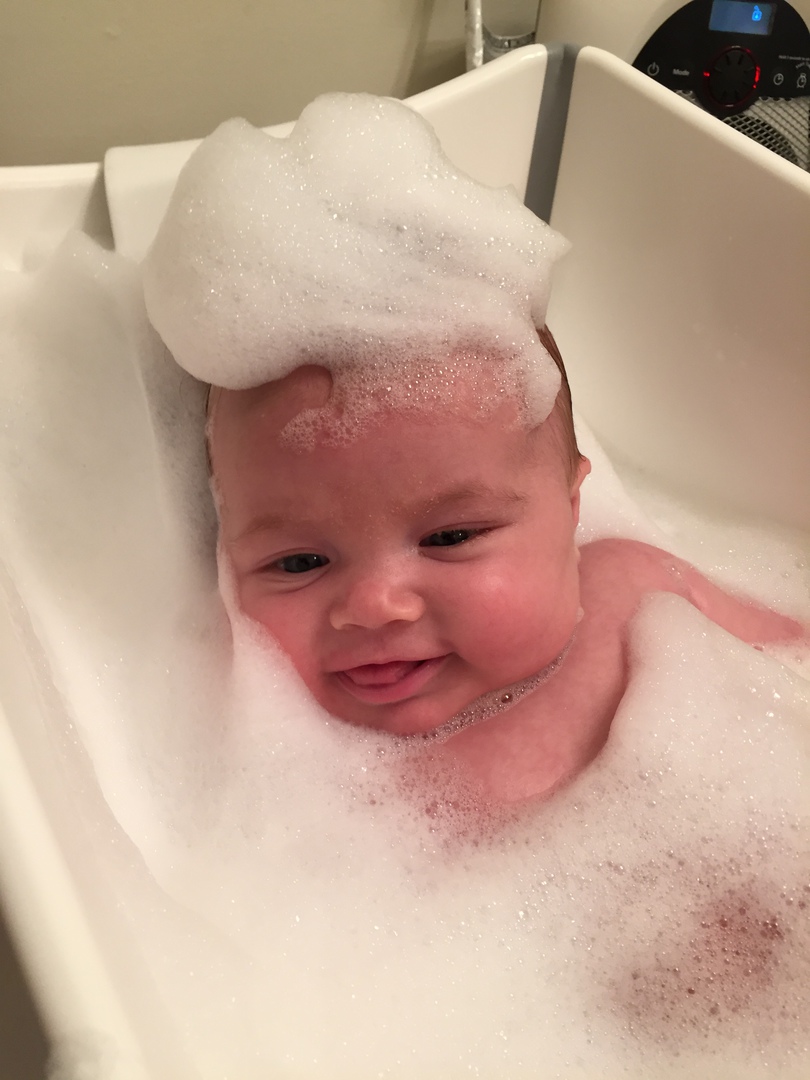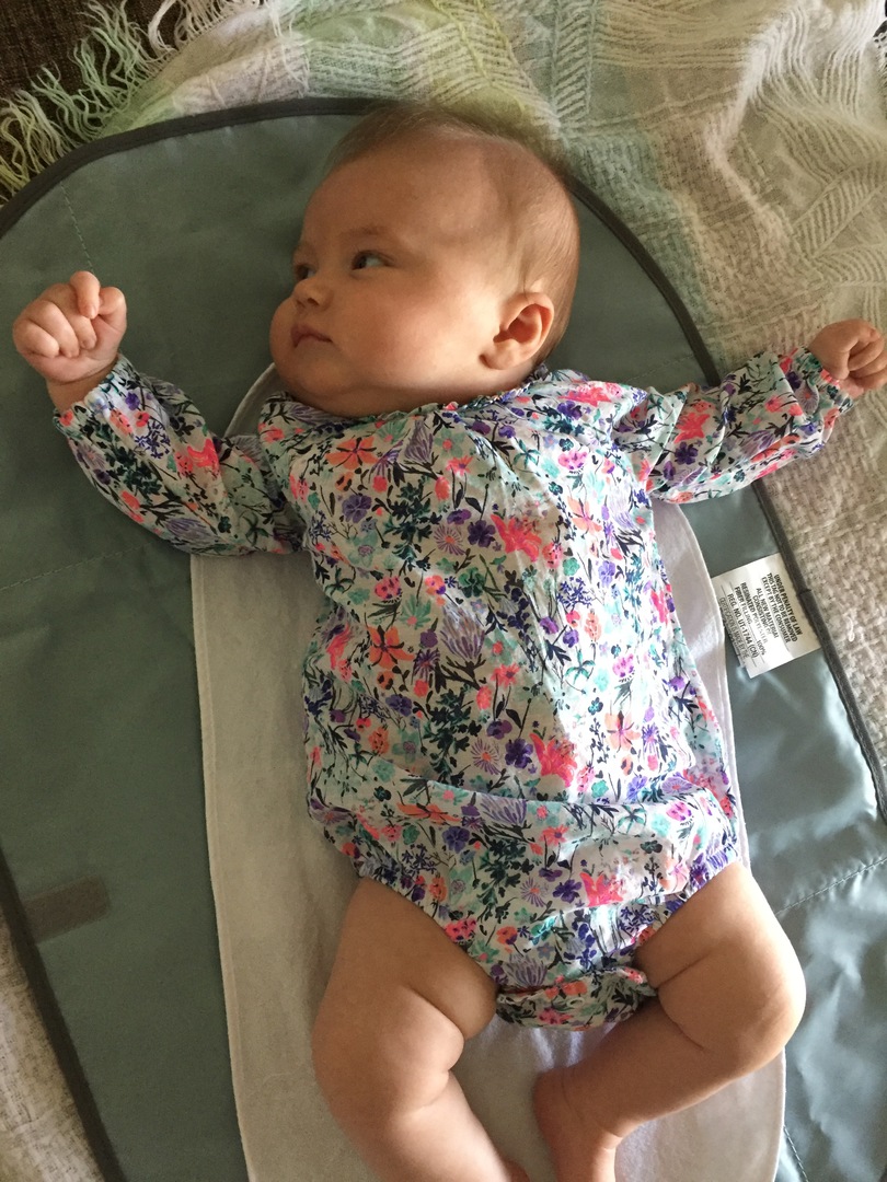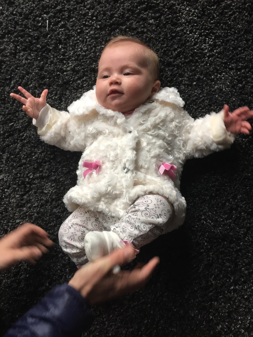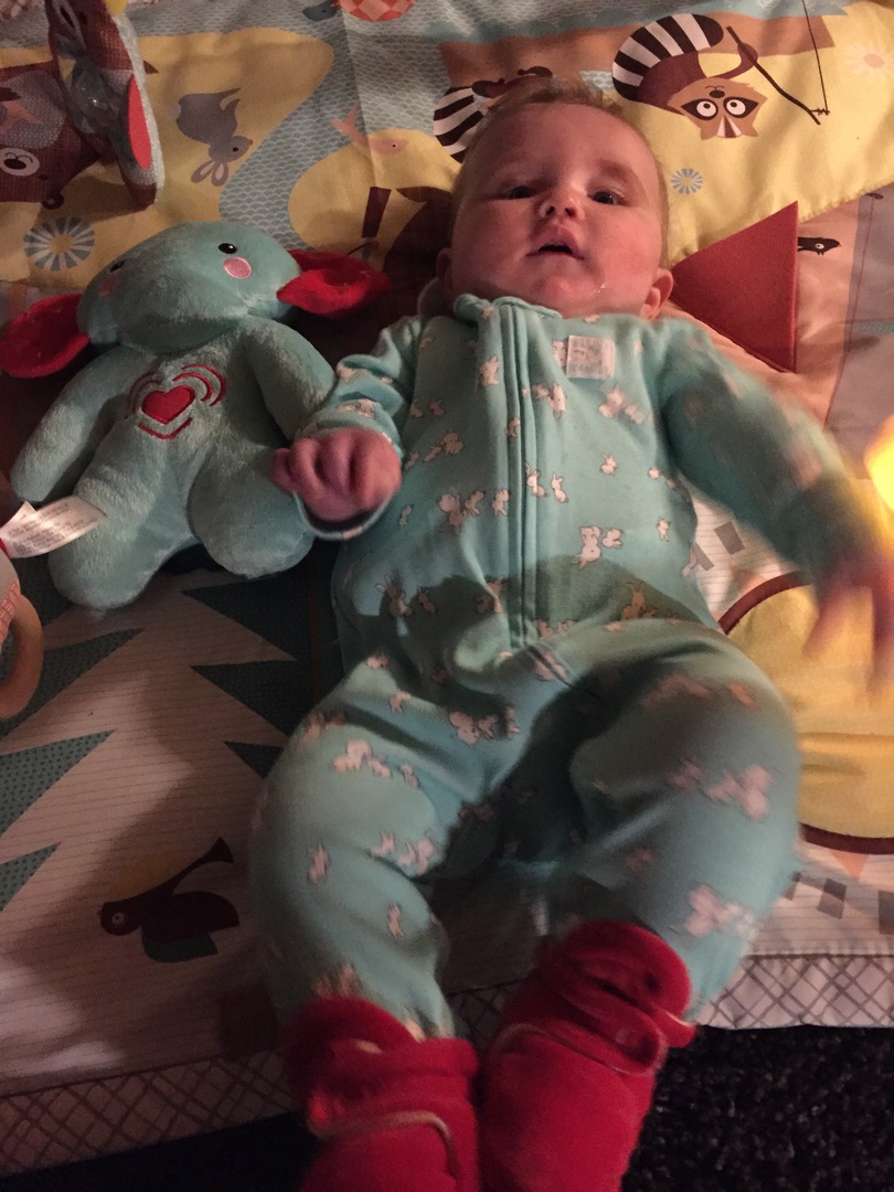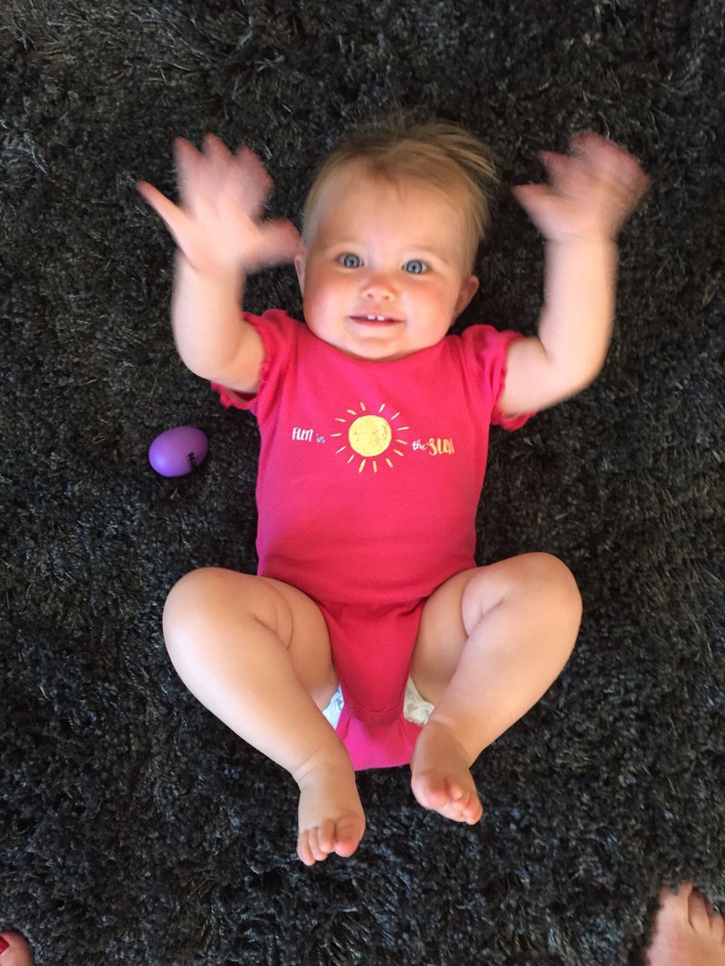 Hi Precious Marla, You are having so much fun! That makes your great grandma Joyce so happy! Pretty soon you will be sitting up all by yourself, and then crawling. Your Papa's will be so busy enjoying you and loving you 💕💖💕