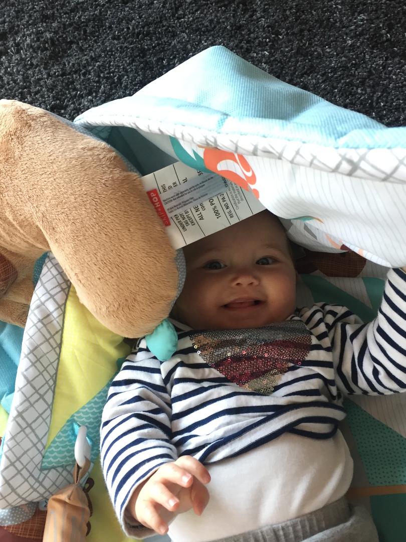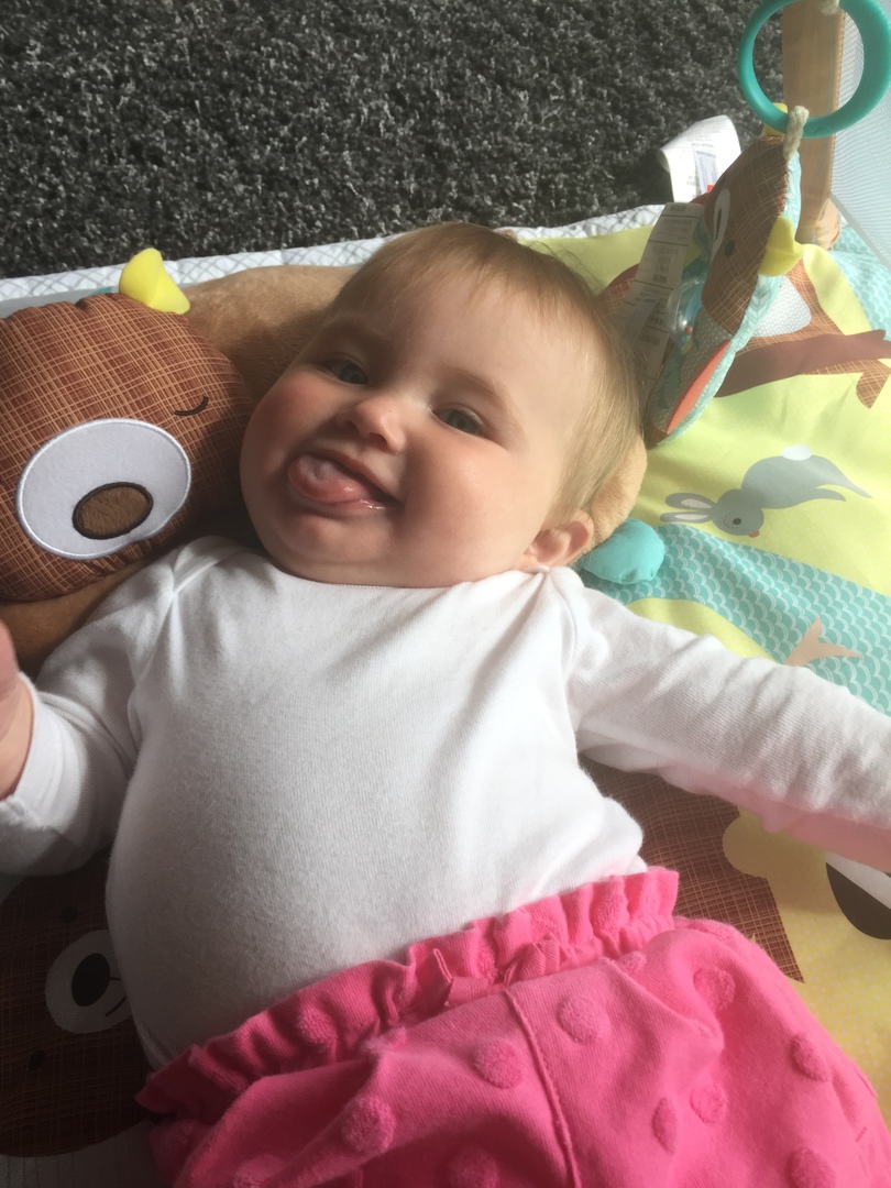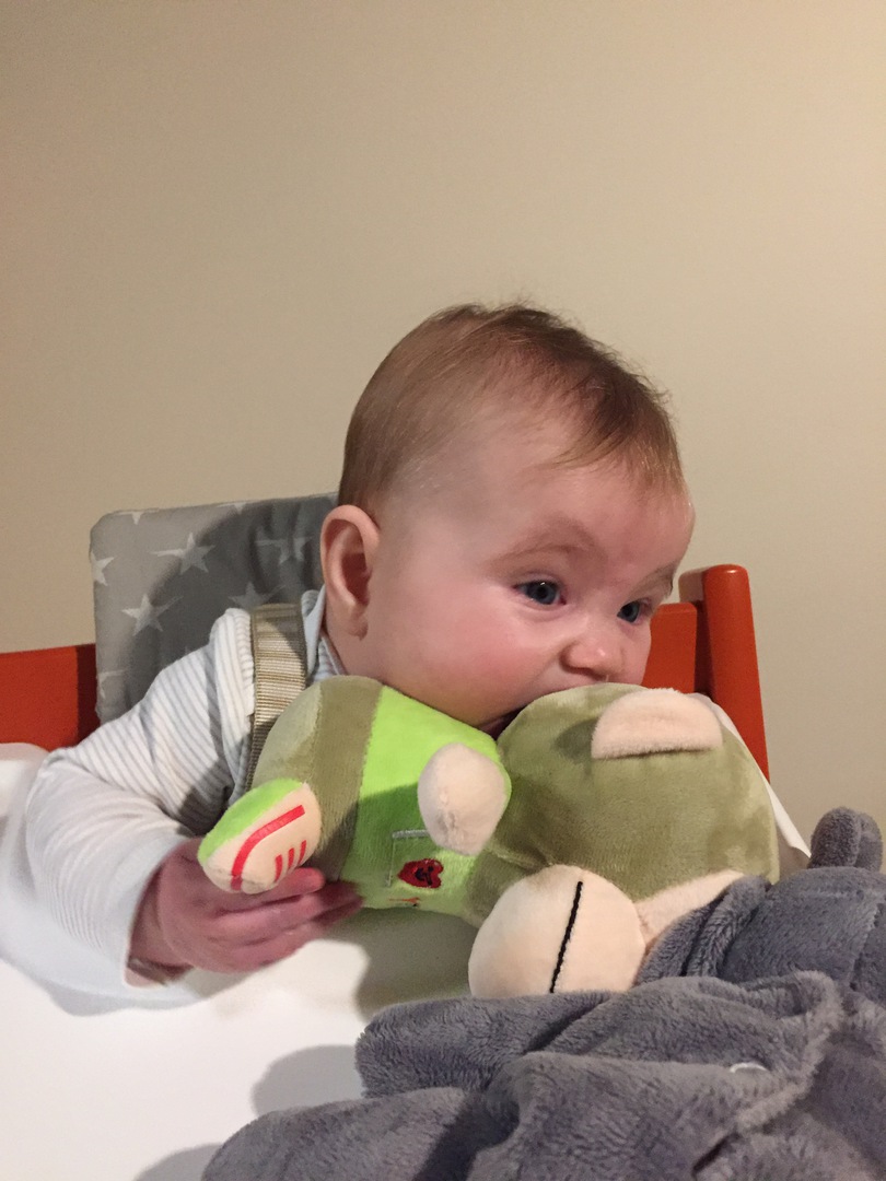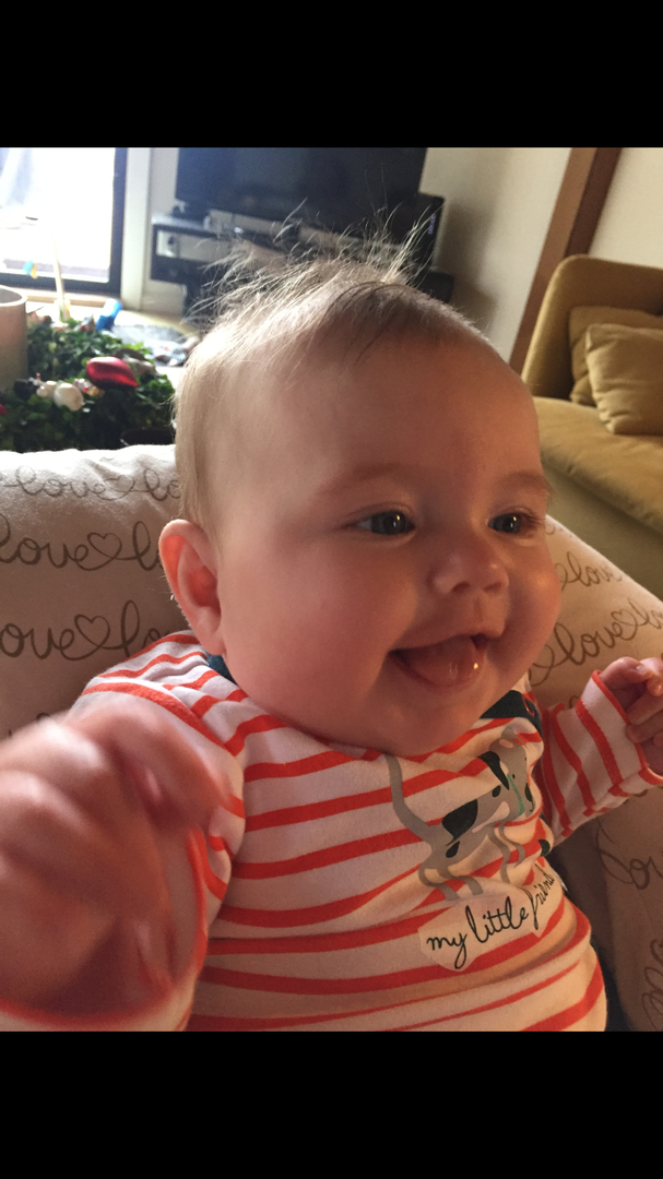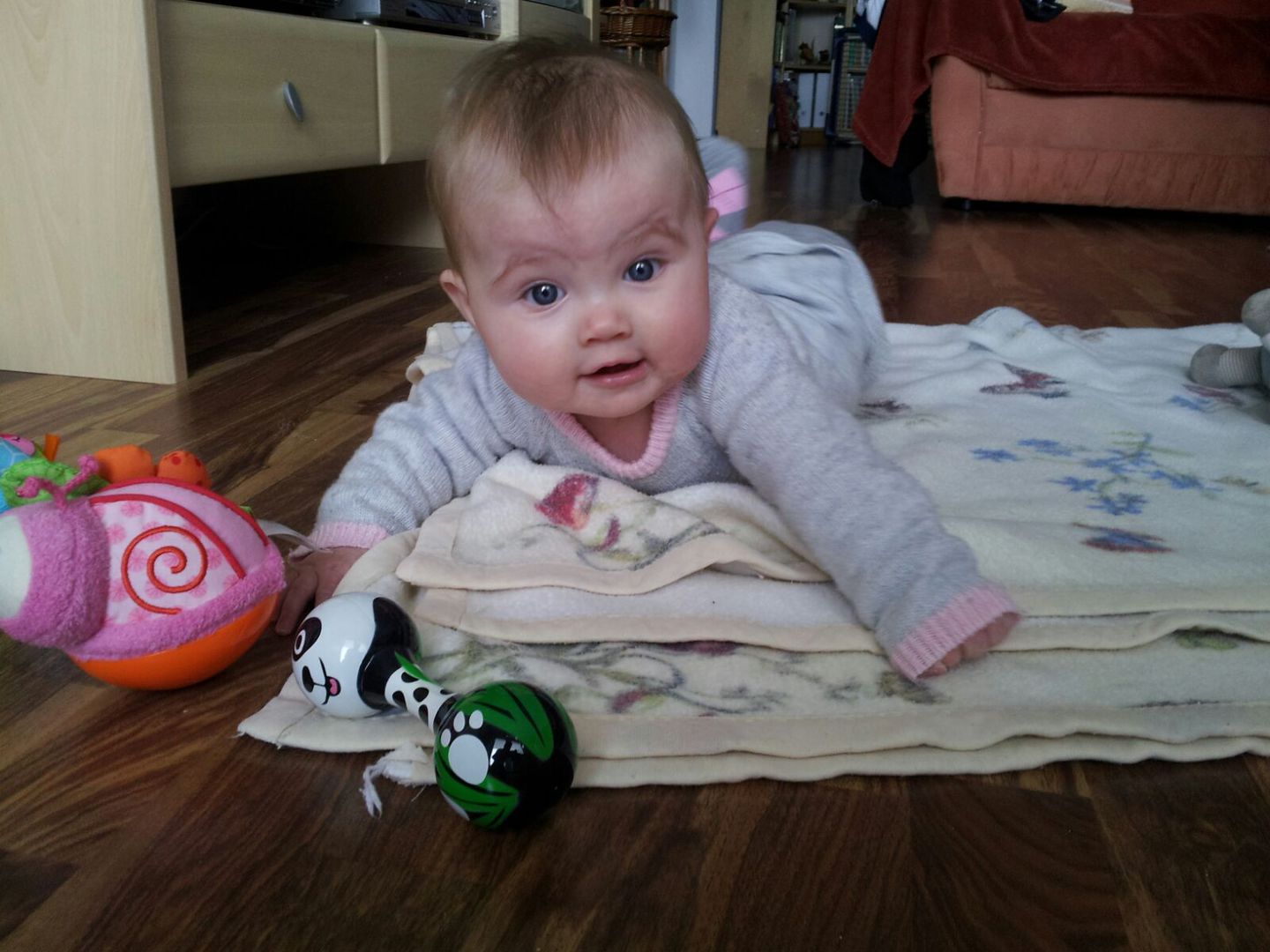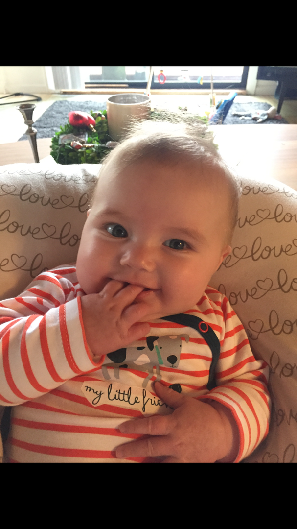 Hi guys, a lot is going on lately. I am teething, I get very good in making silly faces, I can almost sit, and my language abilities are almost perfect (people just don' do what I am telling them!).