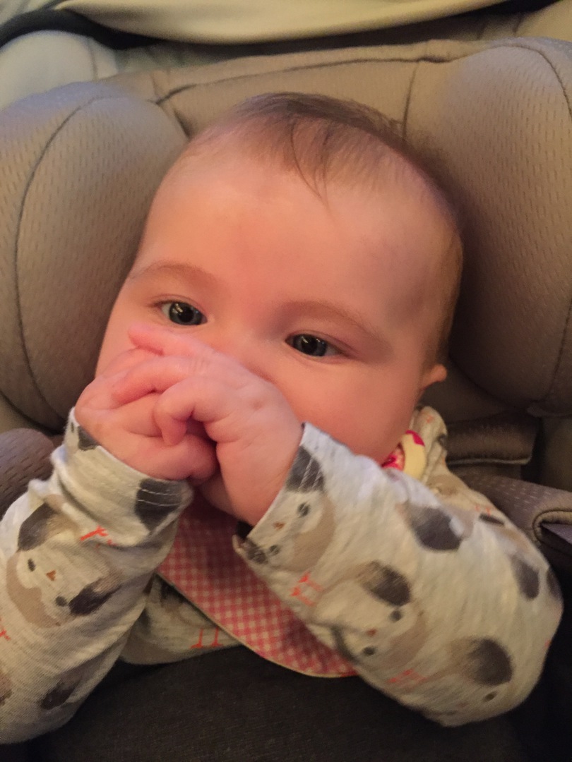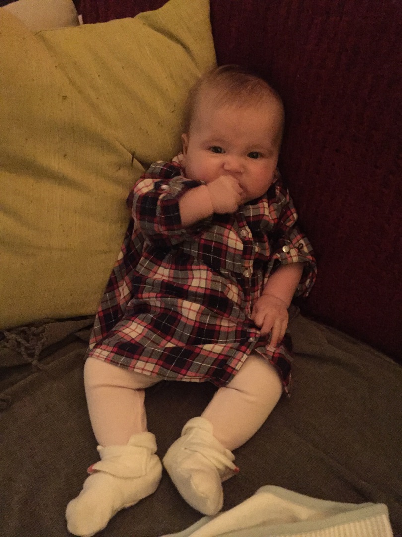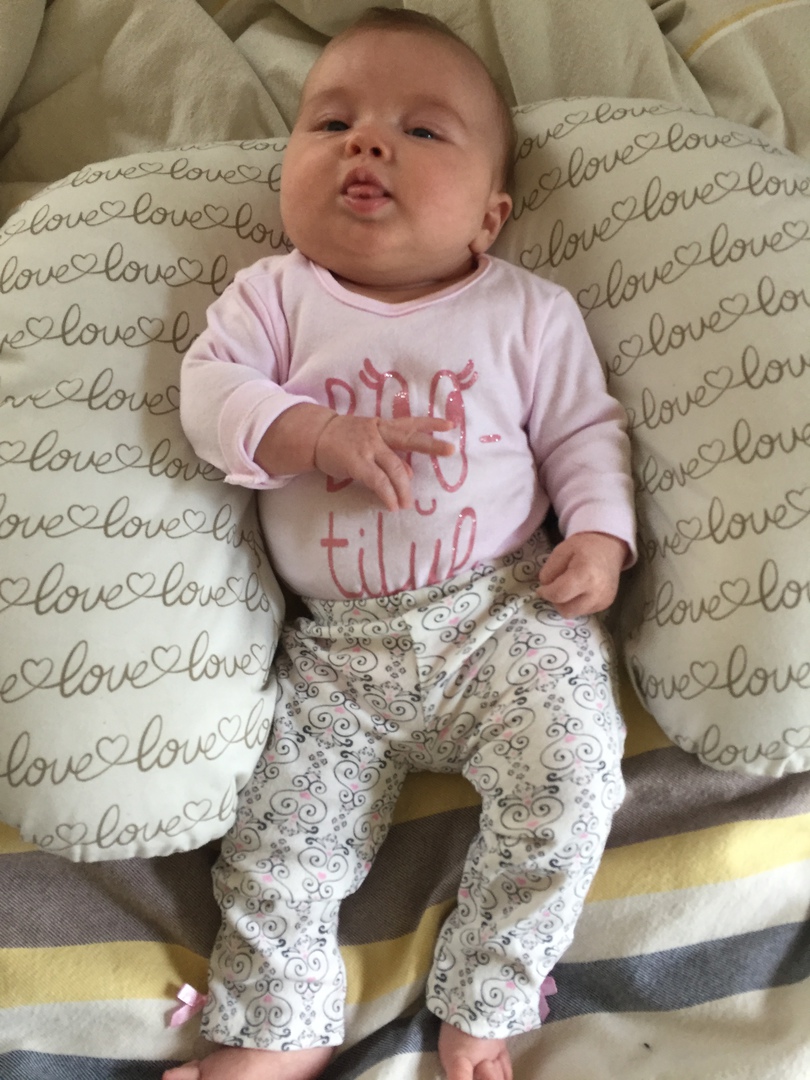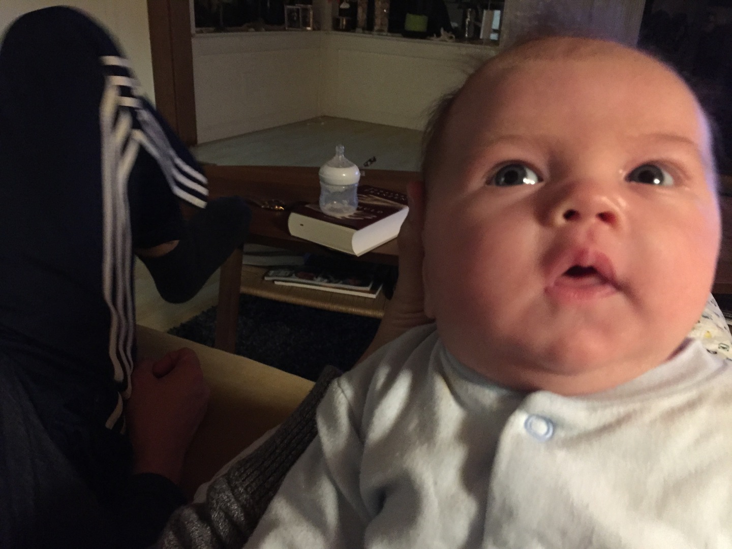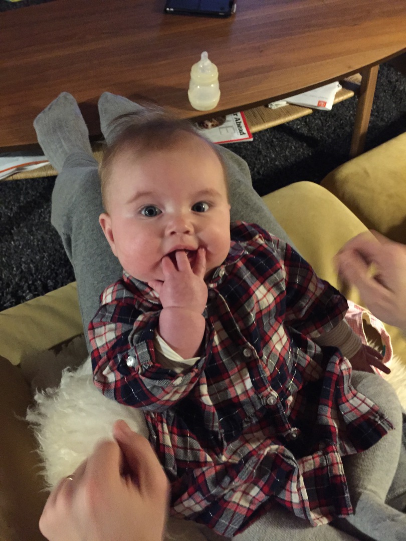 Hi guys, a lot is going on lately. I am teething, I get very good in making silly faces, I can almost sit, and my language abilities are almost perfect (people just don' do what I am telling them!).