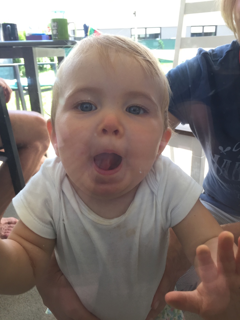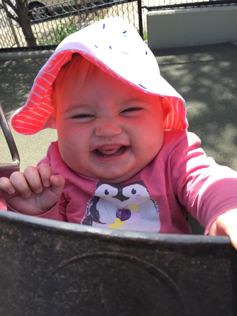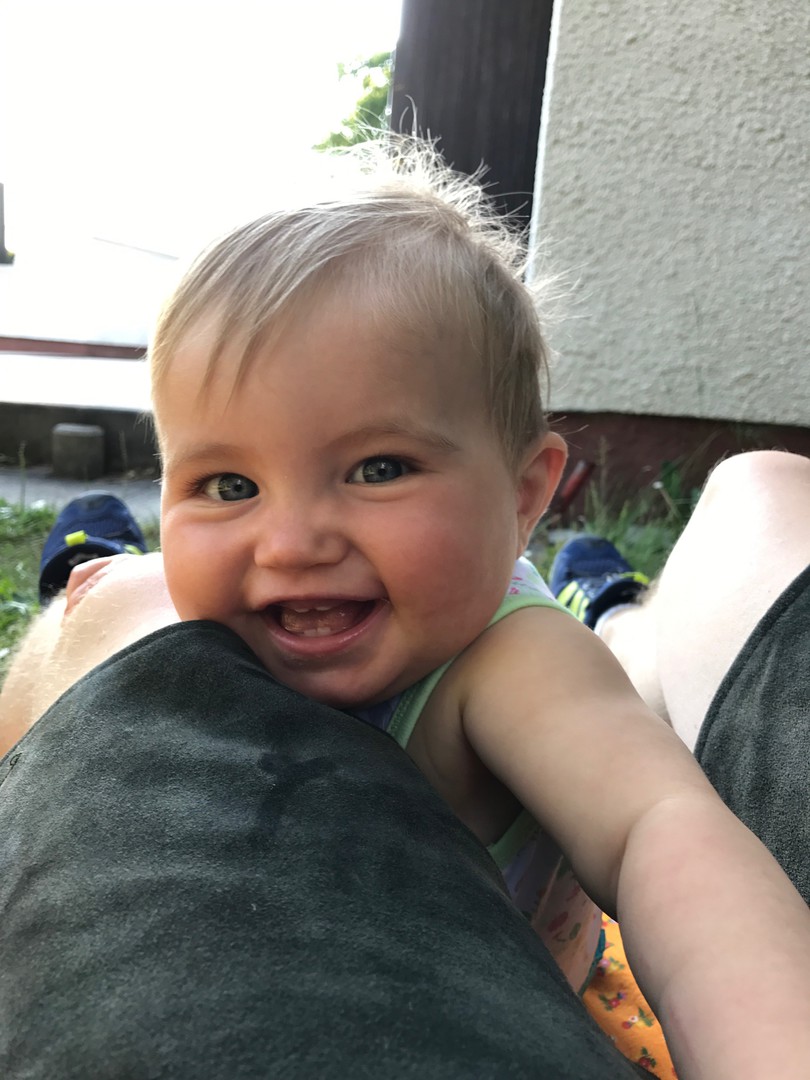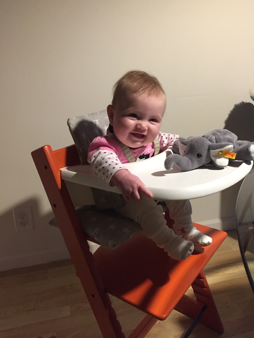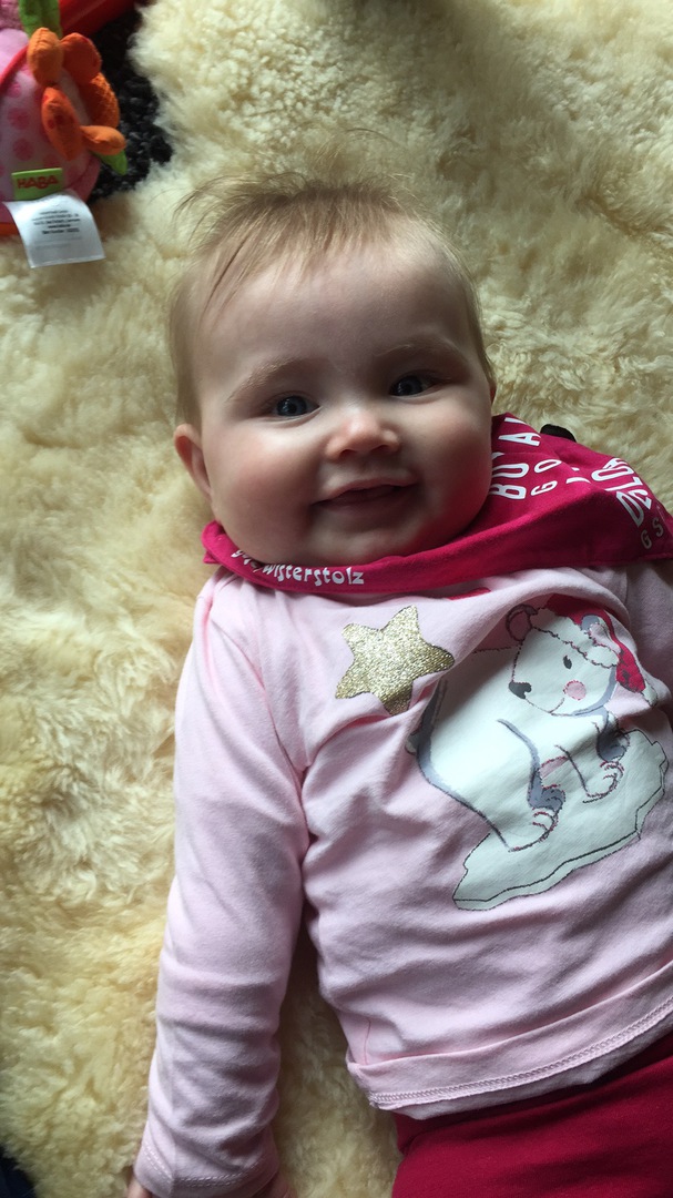 Hallo Leute, es passiert gerade sehr viel. Ich zahne, werde sehr gut im Grimassen schneiden, kann fast schon alleine sitzen und meine sprachlichen Faehigkeiten sind ziemlich perfektioniert (die Leute machen einfach nur nicht das, was ich ihnen sage!).