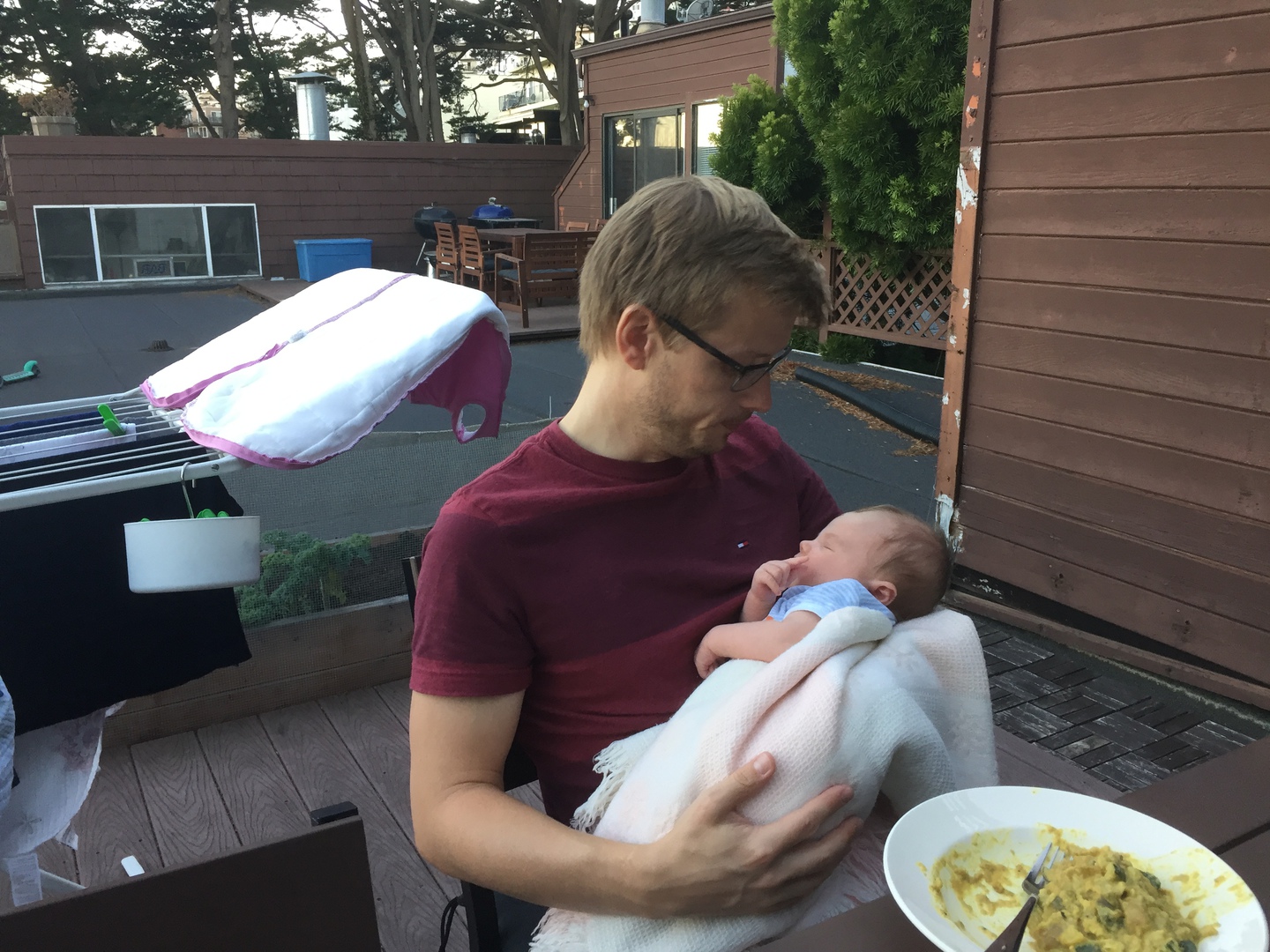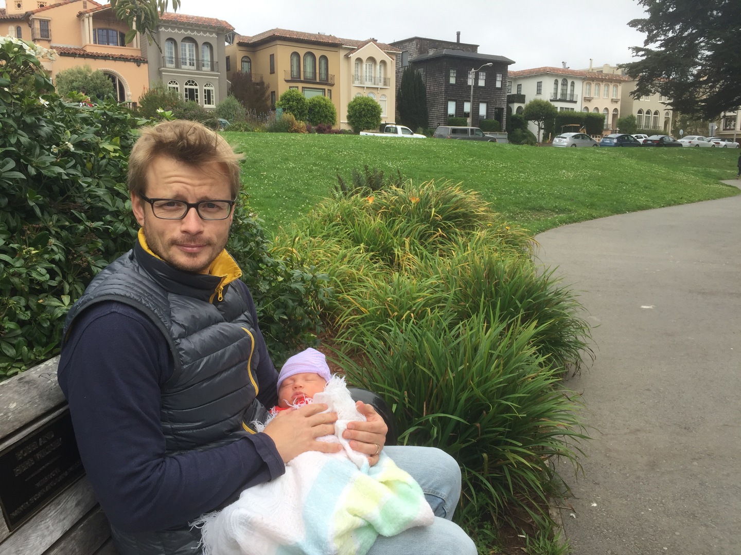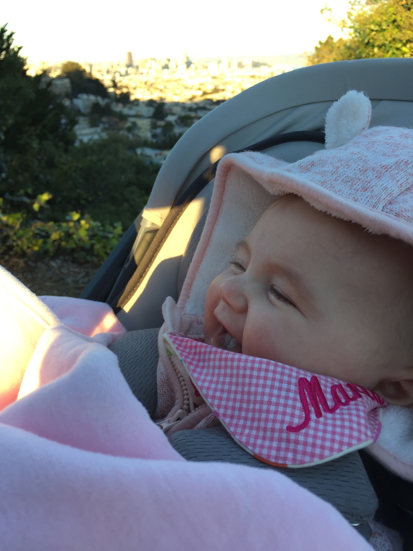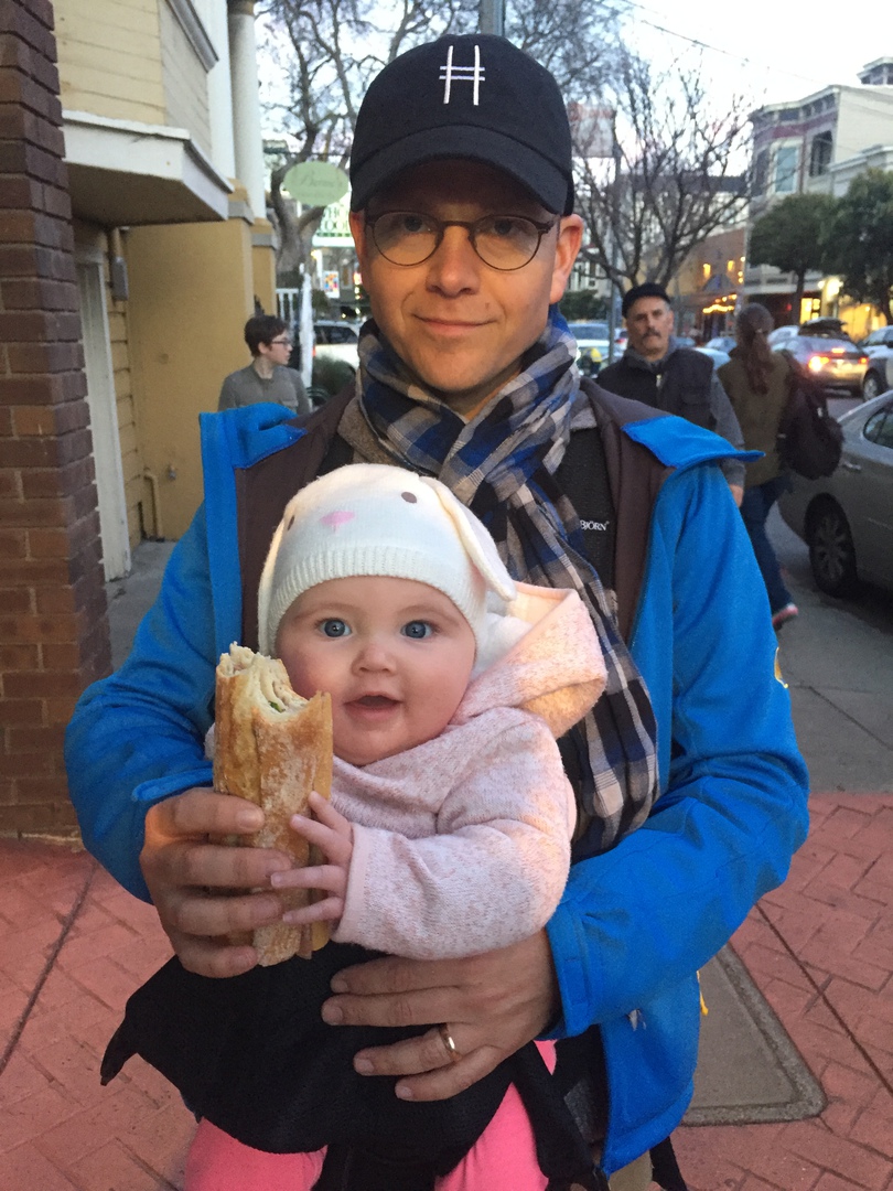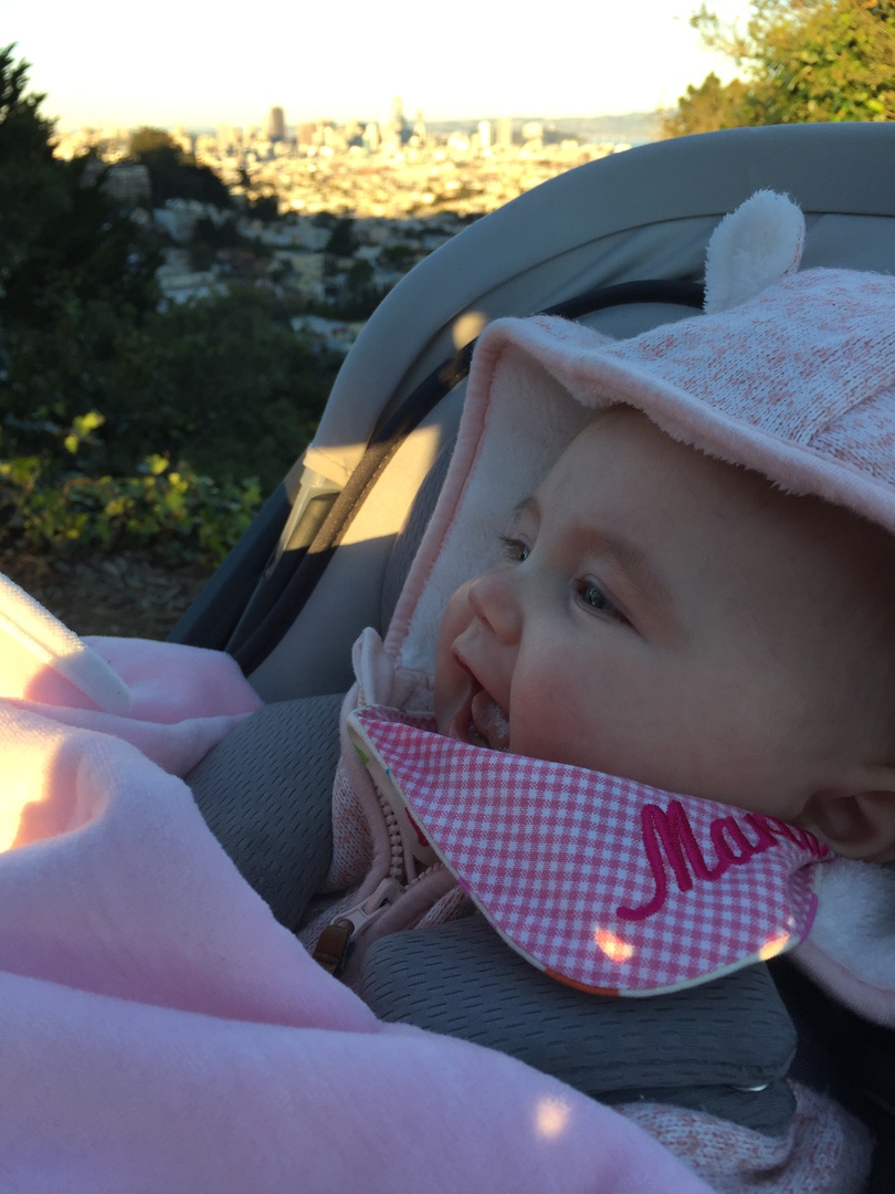 The last couple of weeks in SF went by so fast. We had some heavy rain - it even rain into our apartment - but also some very sunny days. But no matter what kind of weather we are heaving: I enjoy being outdoors with my Papas - or being invited to friends place, like in the pic to Arnauds and Guillaumes place where we had traditional French Galette - and of course a huge bottle of milk!