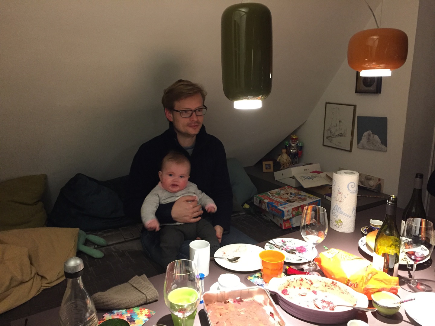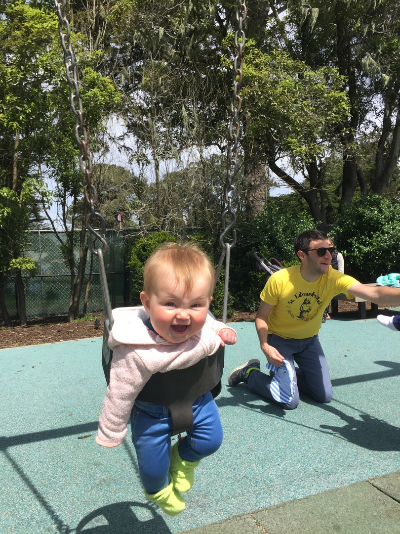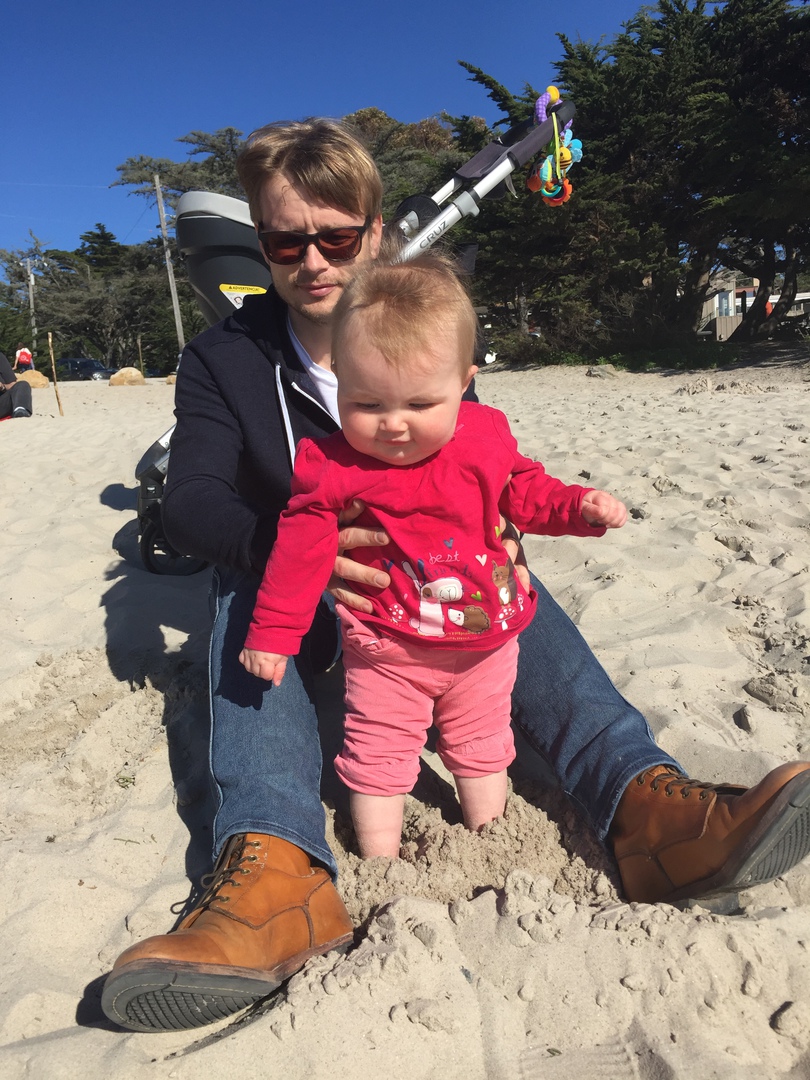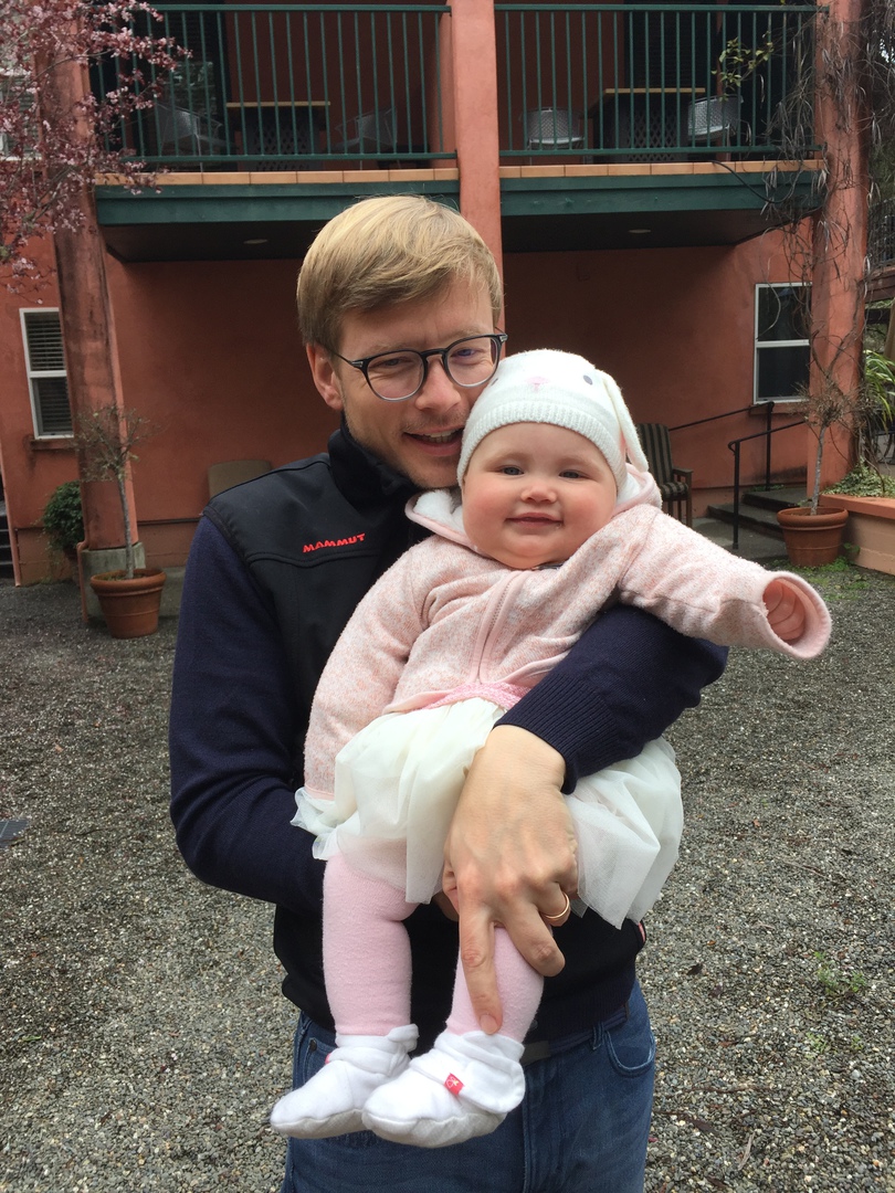 The last couple of weeks in SF went by so fast. We had some heavy rain - it even rain into our apartment - but also some very sunny days. But no matter what kind of weather we are heaving: I enjoy being outdoors with my Papas - or being invited to friends place, like in the pic to Arnauds and Guillaumes place where we had traditional French Galette - and of course a huge bottle of milk!
