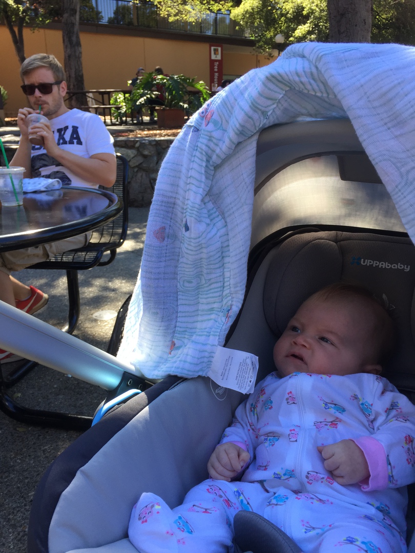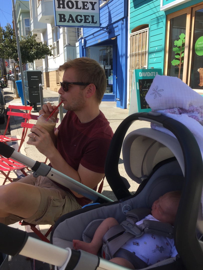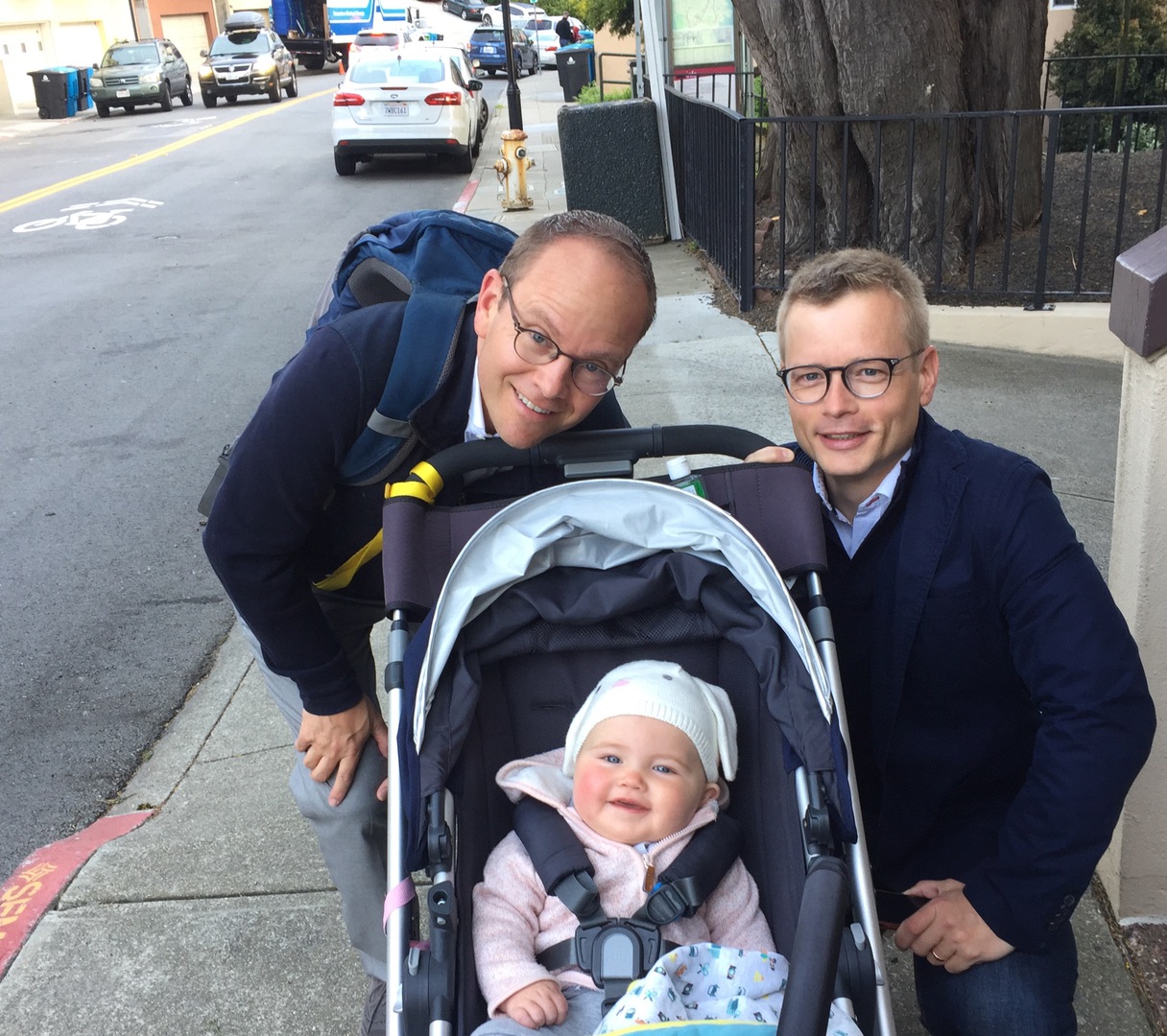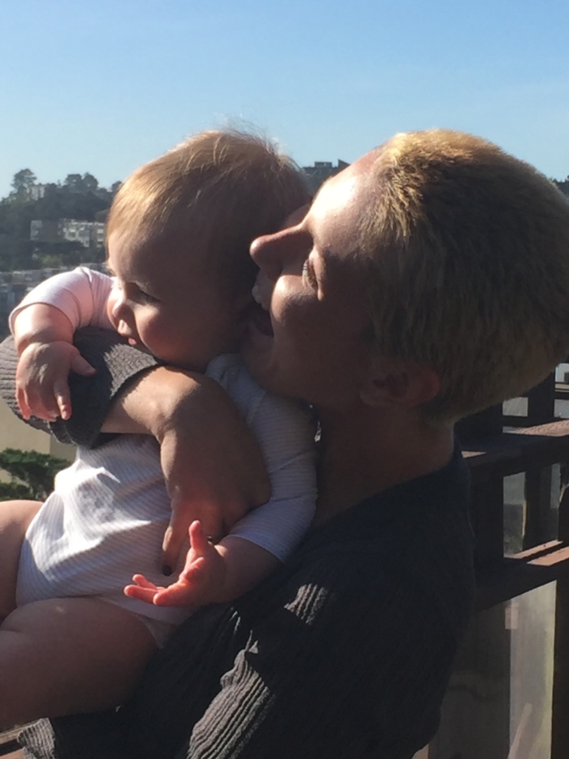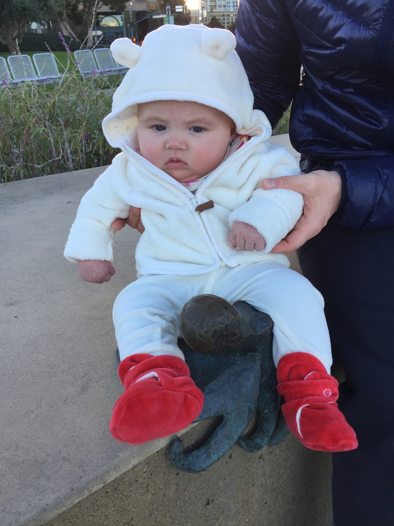 The last couple of weeks in SF went by so fast. We had some heavy rain - it even rain into our apartment - but also some very sunny days. But no matter what kind of weather we are heaving: I enjoy being outdoors with my Papas - or being invited to friends place, like in the pic to Arnauds and Guillaumes place where we had traditional French Galette - and of course a huge bottle of milk!
