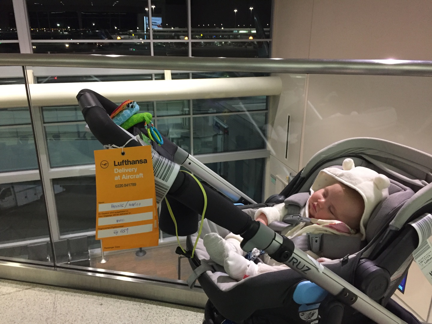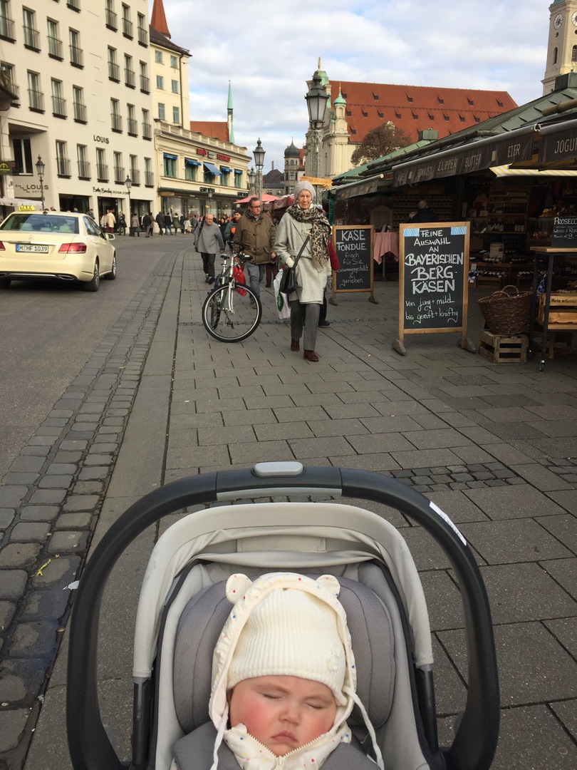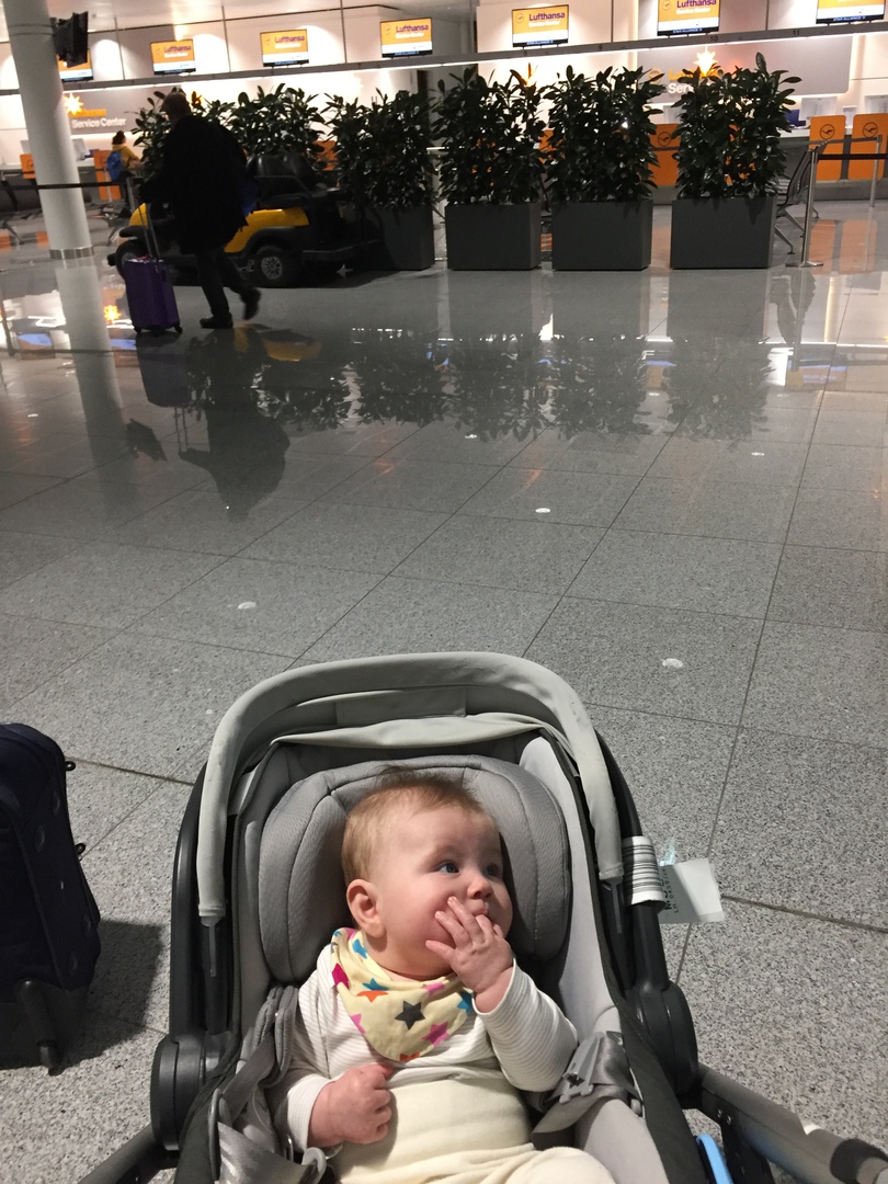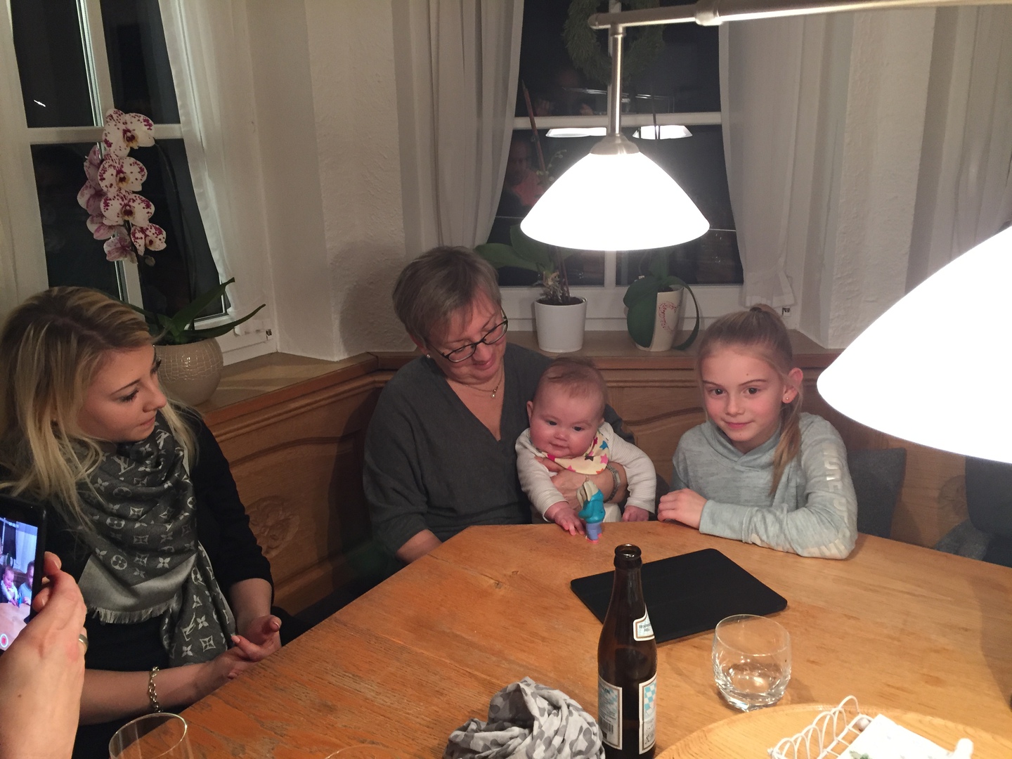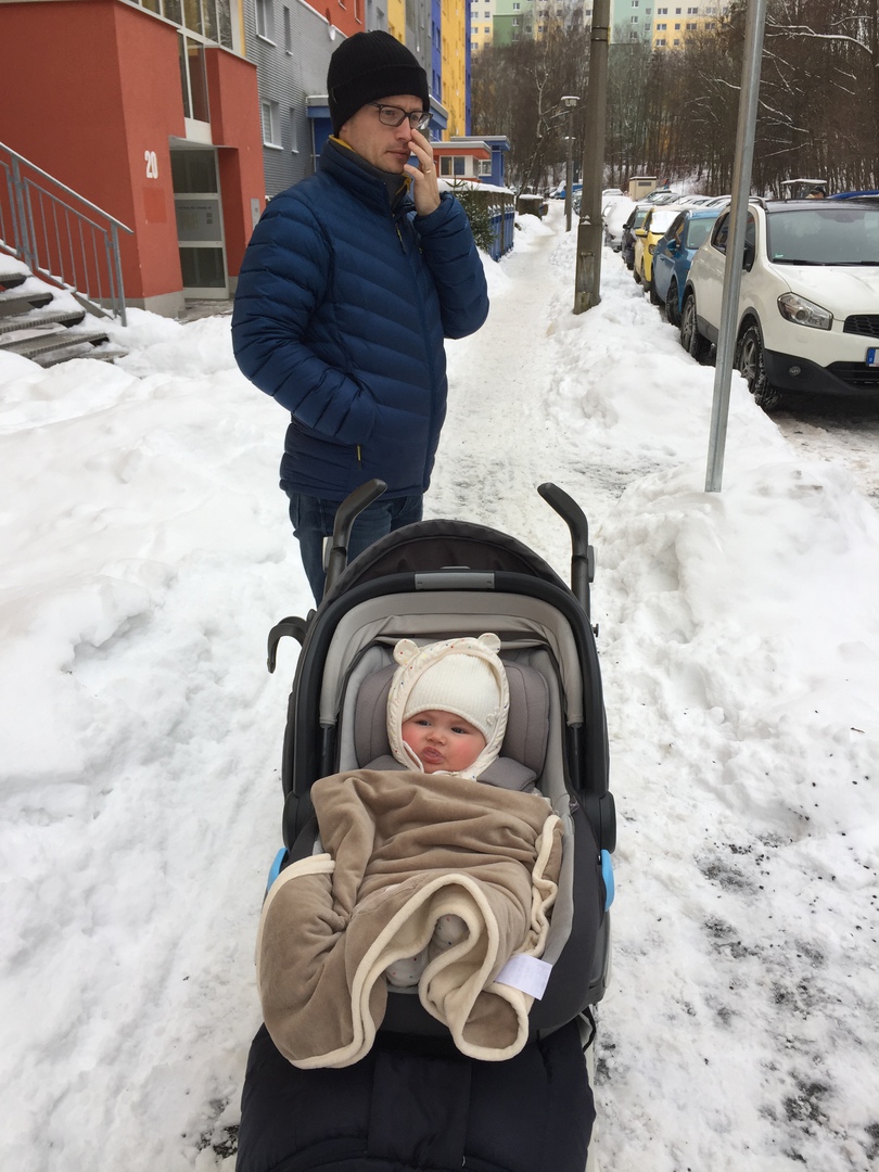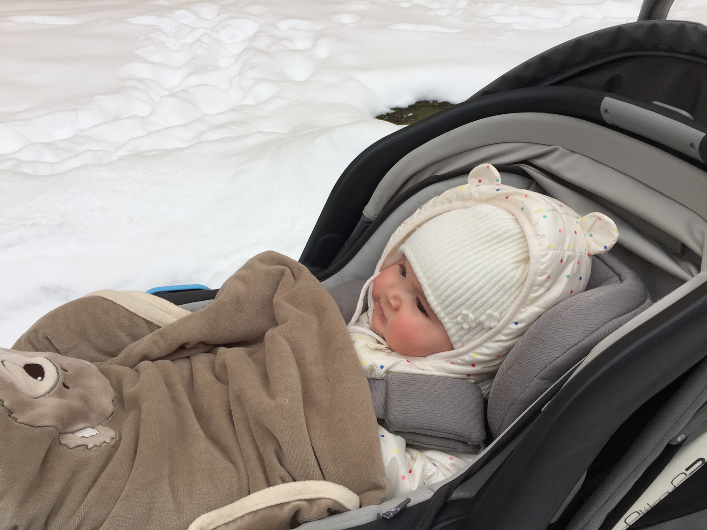 Der Flug nach München war easy. Habe fast durchgeschlafen. Danach habe ich beschlossen, auch weiterhin in der Westküsten Zeitzone zu bleiben. Hat ziemlich Spass gemacht, mit meinen Papaps mitten in der Nacht zu spielen. Aber die Kälte traf mich unerwartet. Wenigstens liegt viel Schnee - und nächsten Winter werde ich meinen eigenen Schneemann bauen.