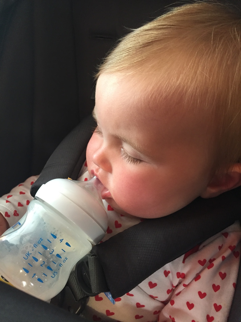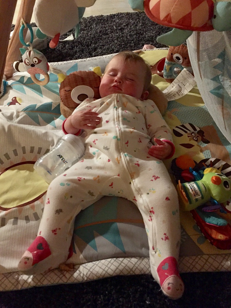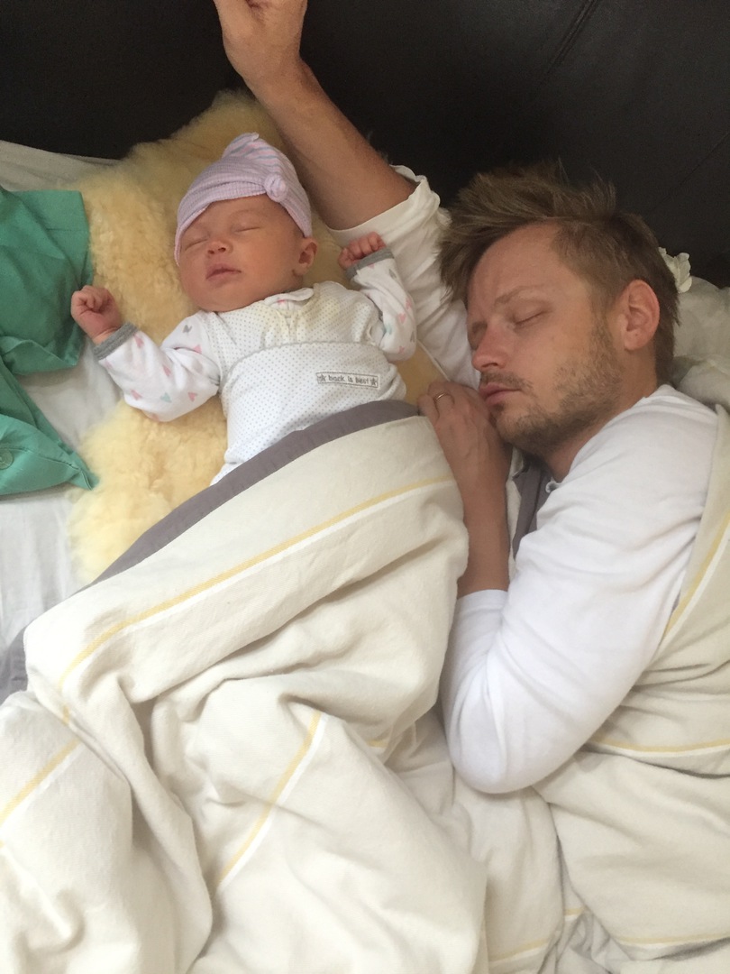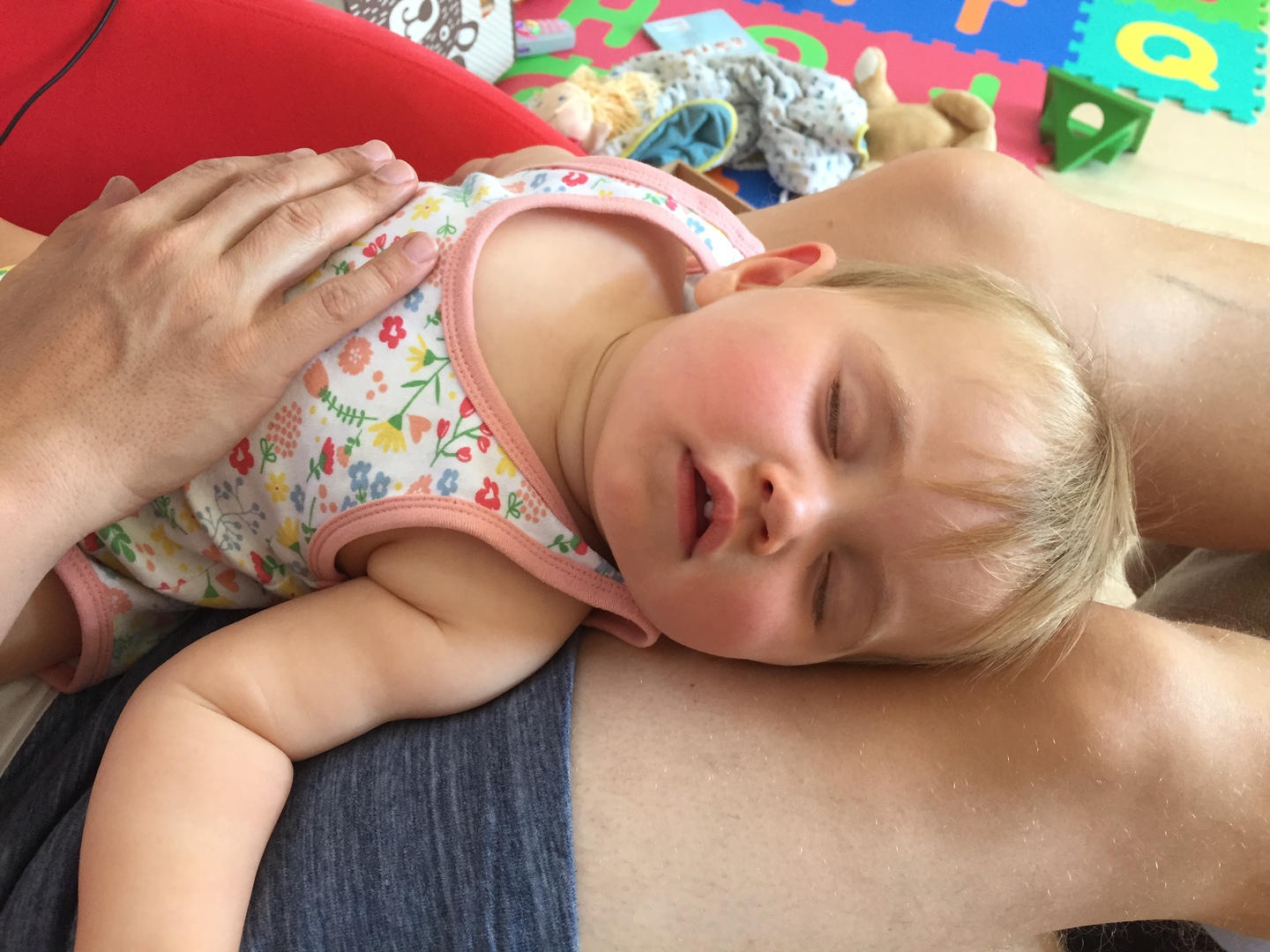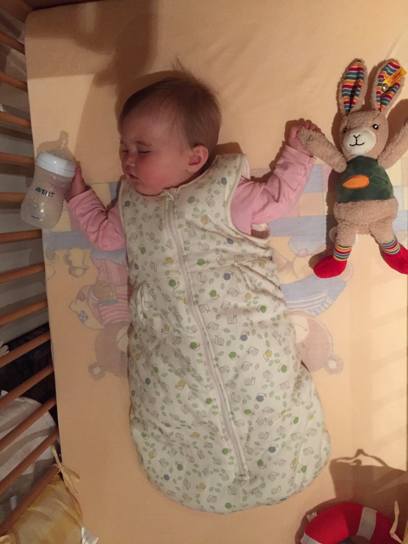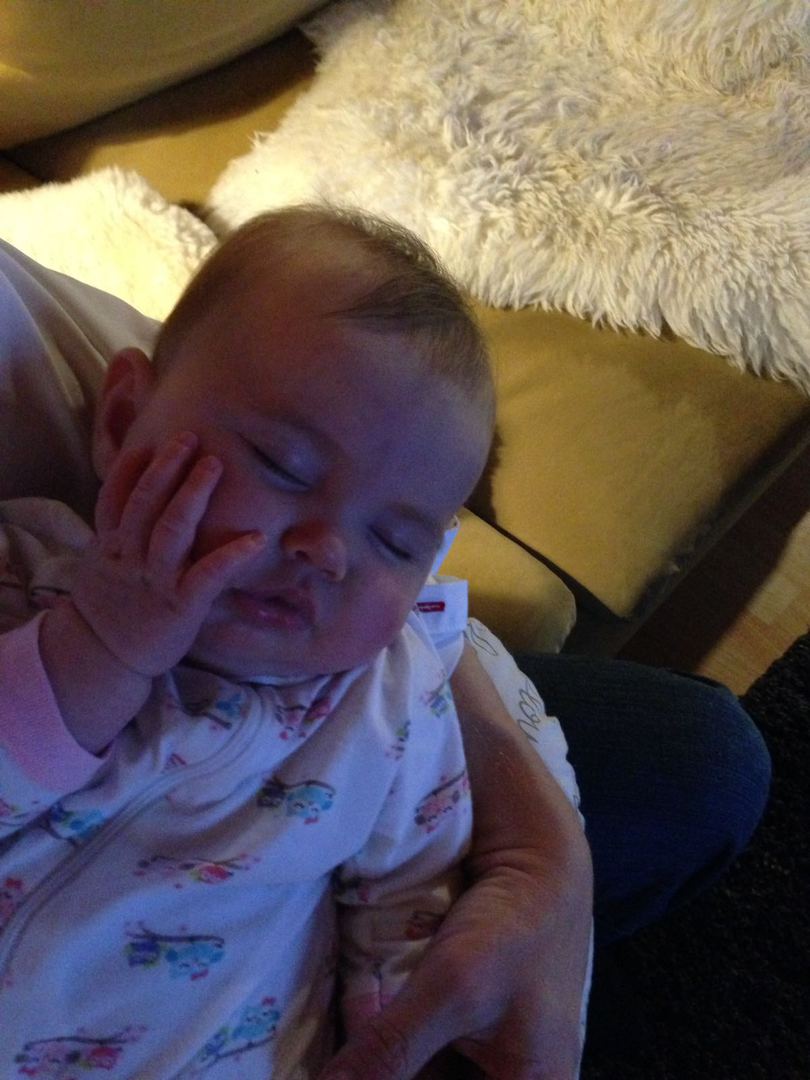 Ich habe eine neue Strategie, die einen Gewinn fuer meine Papaps und mich bedeutet: Ich versuche die Schlafenszeiten nachts durch Reduzierung der Nahrungsmenge per Mahlzeit und gleichzeitiger Erhoehung der Fuetterungsfrequenz zu erreichen. Dadurch schaffe ich es, tagsueber fast durchzuschlanfen und meinen Papas koennen dann ihr Ding machen. Was auch immer das ist. Plus, durchs staendige Herumtragen nachts trainieren sie ihre Muskeln und koennen so aufs Fitnessstudio verzichten - und somit Geld sparen. Yeahh. Und wie man auf dem Bild sieht, es wirkt: Totale Enstpannung durch meinen neue Strategie. Ich frage mich nur, warum die beiden seit ein paar tagen wie Gespenster aussehen...