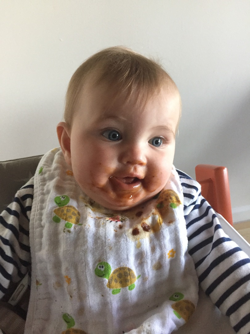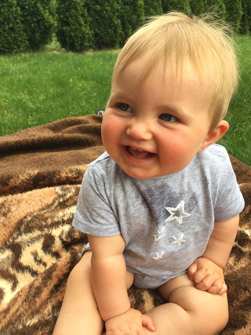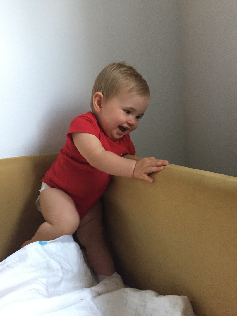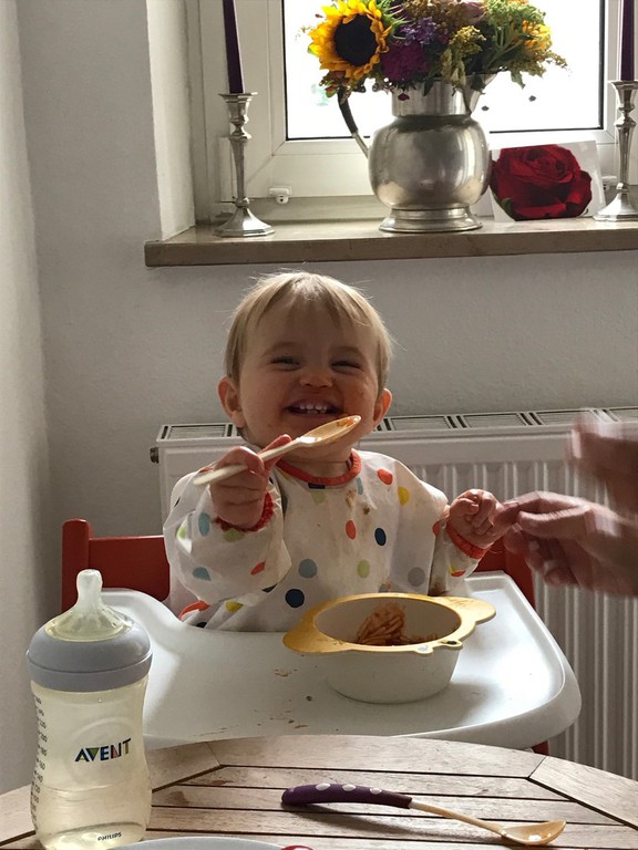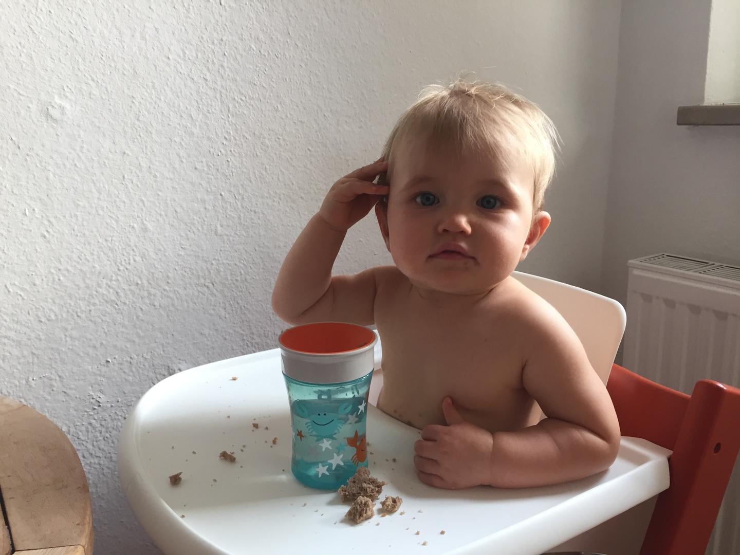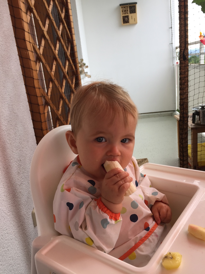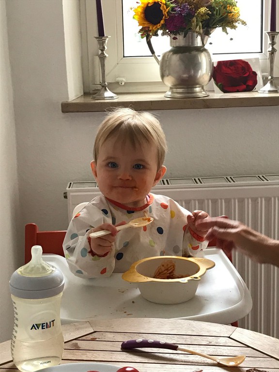 Hi guys, it's been 2 months since I updated this blog. Too long - and a lot has happened again. Not only the weather changed from Summer to autum, I changed as well. I turned 1 end of August, which means I am no baby any longer! I can eat with a spoon by myself (the food doesn't always make it into my mouth though. Very strange...), and I can stand freely and I can even do 2-3 steps by myself - when I am not tired or hungry!