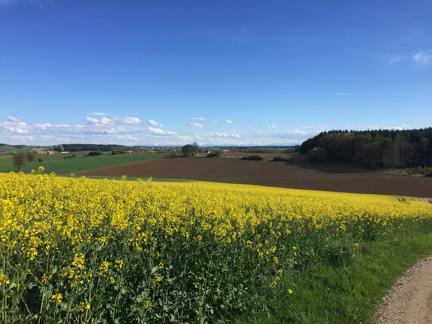 Zur Zeit wohne ich mit meinen Papas bei Oma Renate und Opa Franz im bayerischen Hinterland, habe allerdings gehört, dass unser Apartment in München bereits leer ist und wir nur noch auf die Möbel warten (die immer noch im Hafen in Oakland sind), und sobald die da sind, ziehen wir ein - und ich werde sogar mein eigenes Zimmer haben. Als wir in München gelandet sind, war das Wetter fürchterlich. Es hat sogar geschneit. Zum Glück ist es mittlerweile wieder Frühling und wir können uns wieder draussen bewegen. Aber jeder hat sich gefreut, mich zu sehen. Ich liebe es, mit meiner Cousine Lilli zu spielen. Und ich habe ein neues Hobby (neben meiner Milchflasche, dem Schwimmen oder dem Schaukeln): Unter Couchtischen krabbeln (oder besser: rollen). Ich kann Stunden dort verbringen. Ist super spannend. Müsst ihr mal ausprobieren. Ich habe übrigens ein Foto unserer bayerischen Landschaft hochgeladen. Im Hintergund kann man sogar die Alpen sehen. Und irgendwo dazwischen ist München. Bis bald, Leute.