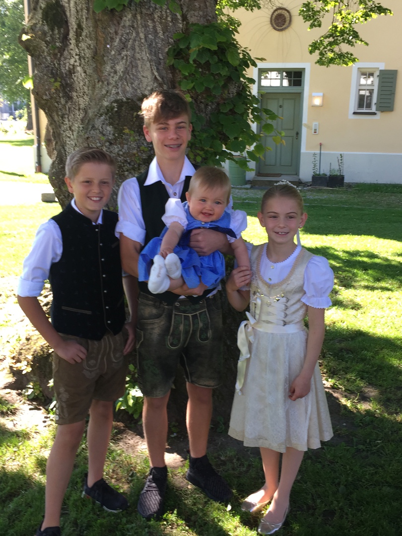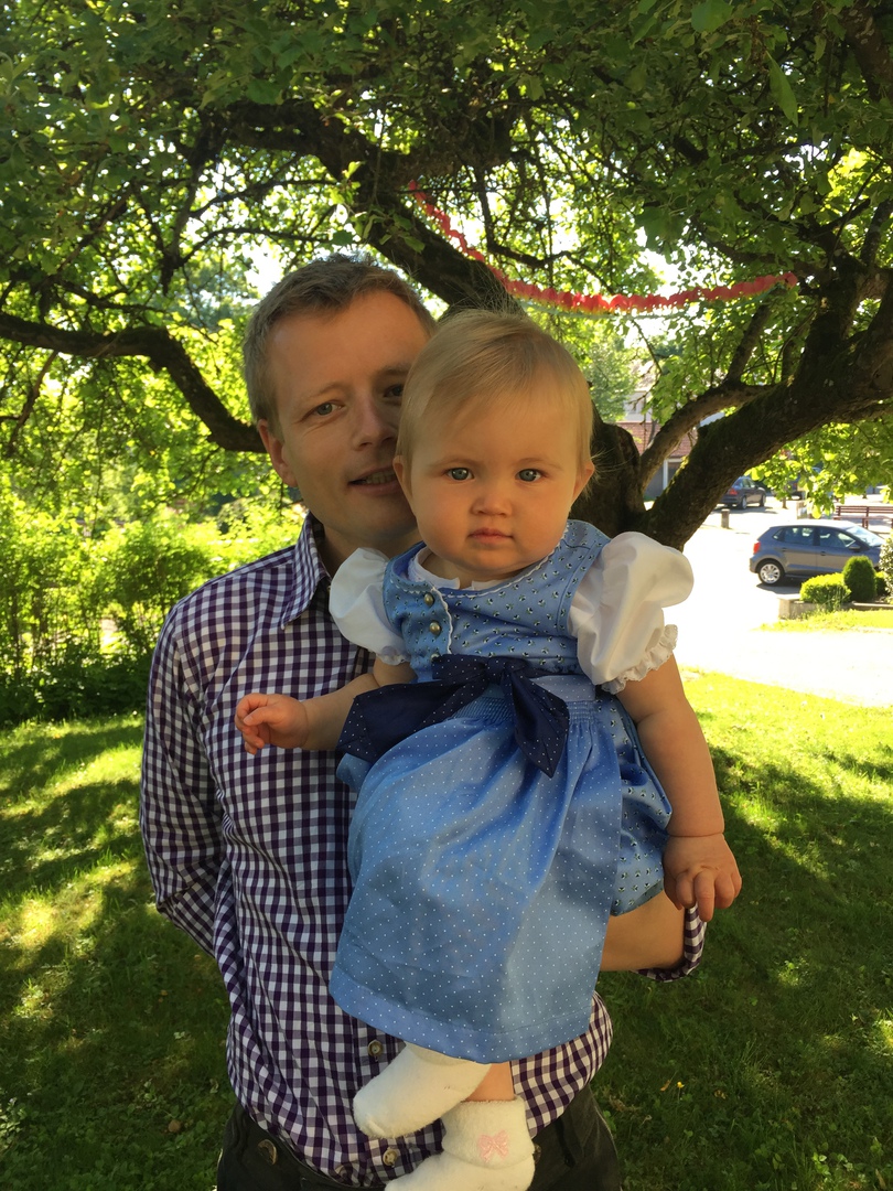 It has been a busy month in Germany - we are still living in the countryide, by the way - we went to Austria twice (once for the wedding party of uncle Janek and aunt Marina), had a family party where I was wearing an official Bavarian dress called Dirndl - my Mommy gets one too when she comes - prepared our apartment in Munich (my Papas painted my room in a shocking colour, I am not amused!) and it was hot hot hot (where is the San Francisco cooling breeze?). Next weekend we are off to Zurich in Switzerland. I'll keep you posted!