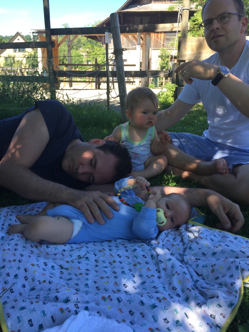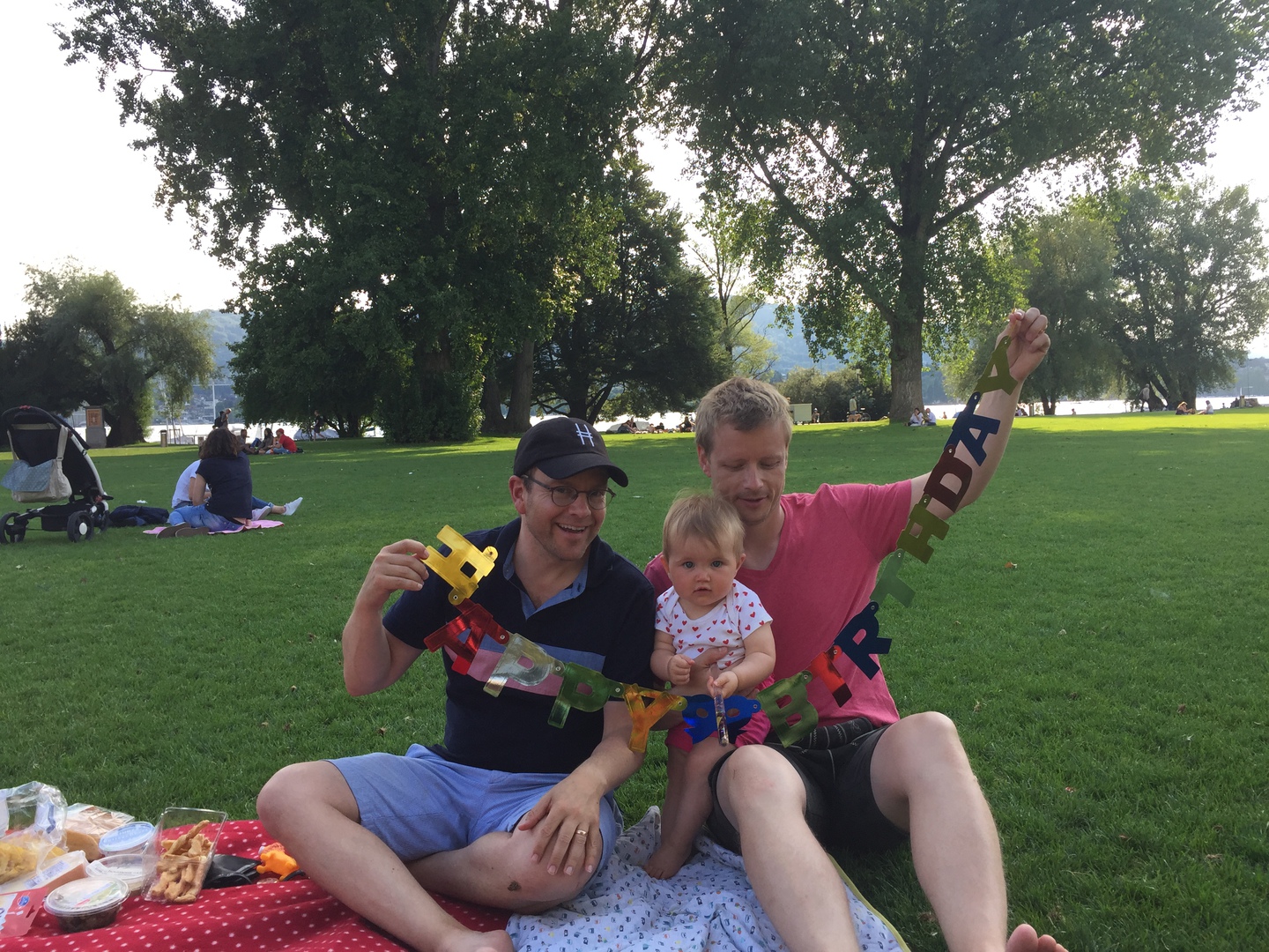 And we are living in Munich now. Me, alone with my Papas. But the apartment is not finished yet, but at least my stuff is there already! And I hope my Papas are as flexible when it comes to my wishes as Oma and Opa. We will see. But before we moved, we visited our friends in Switzerland. It was great to see Imogen, Susanne, Allan, Philipp, little Vincent (yes, he is even small than I am) and Anna - did you know that Anna made a movie about her great-great uncle who emigrated into the US and became a Soul musician? My Papas are in this movie, too! And last week, I visited my other Oma and Opa and my Ur-oma and Ur-Opa in Eastern Germany. We had such a blast! Oh, and did you know that Mommy and Daddy are coming over for my birthday? Yeahh!!