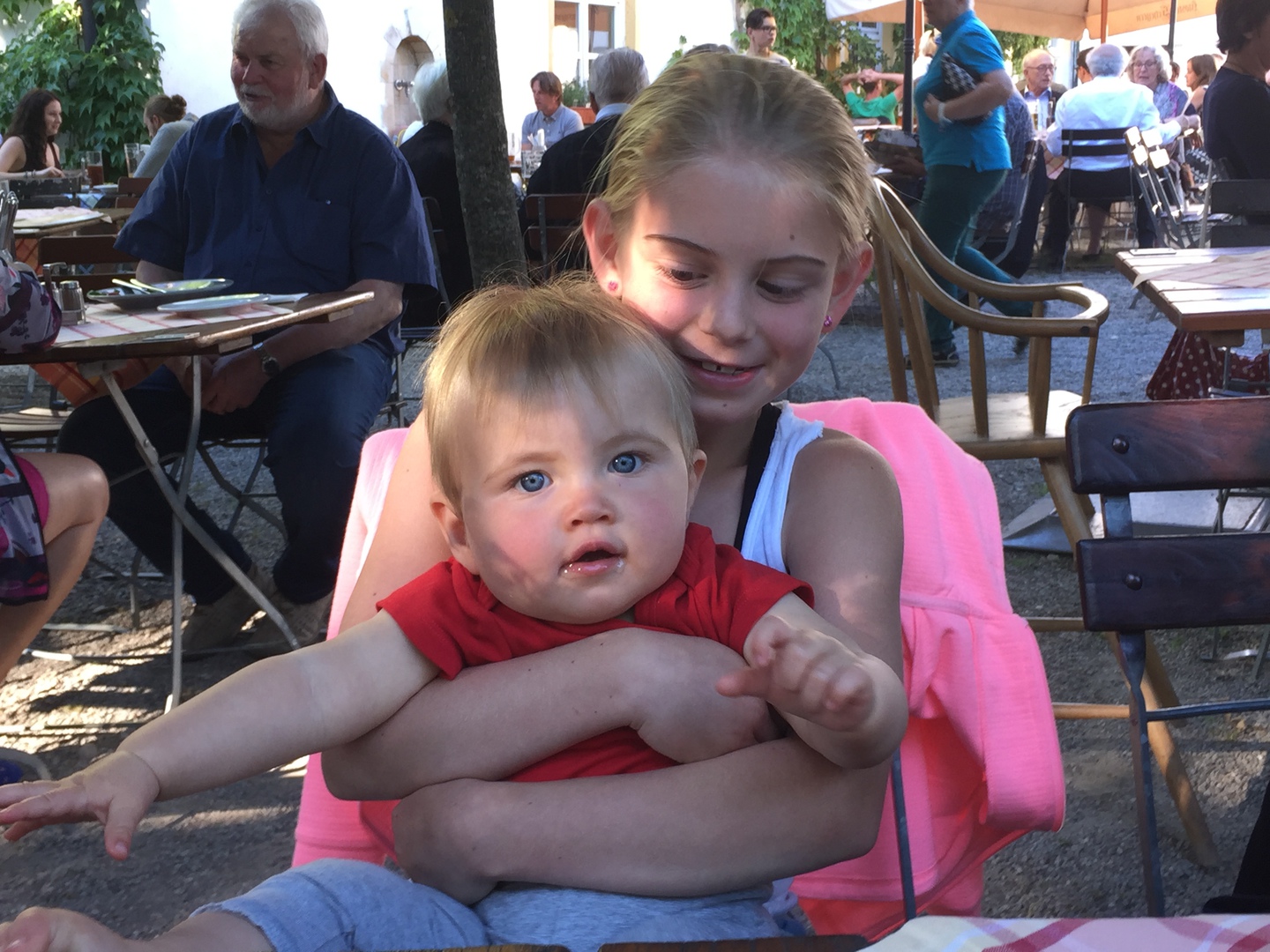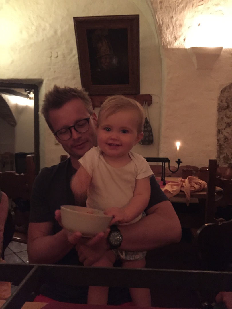 Letztes Wochenende haben wir in Innsbruck verbracht, haben dort deon 60sten meiner Oma Martina gefeiert. Wir waren sogar beim Ritteressen und alle Leute haben mit den Händen gegessen. Was daran allerdings so besonders sein soll, habe ich nicht verstanden. Ich mache das die ganze Zeit. Habe ich euch schon erzählt, dass ich die Treppen ganz alleine hochkomme? Und ich kann schon für ein paar Sekunden frei stehen. Bald werde ich wohl auch Laufen können, hoffentlich dann, wenn Mommy und Daddy hier sind, in nicht einemal mehr 3 Wochen, yeahh! Bis bald meine Lieben!