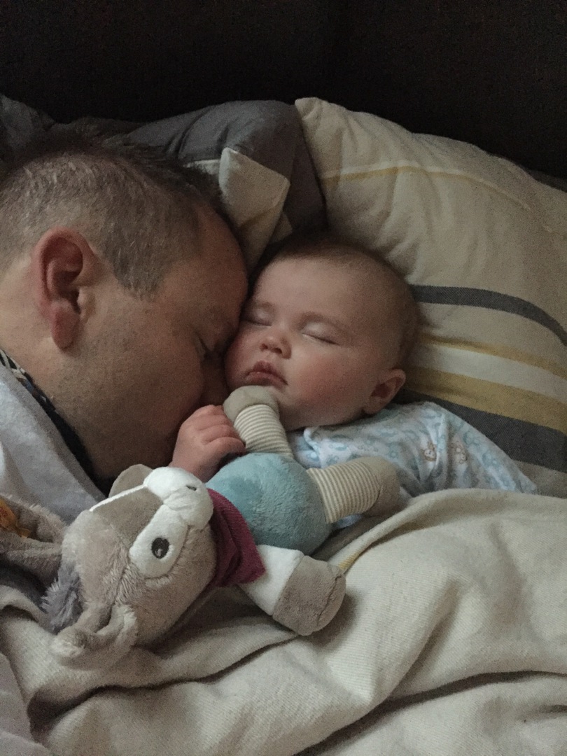 Wir sind gerade nach Hause gekommen und nach einem langen und ereignisreichen Tag ist as das Beste, mit einem meiner Papaps zu kuscheln. Gute Nacht, Leute.